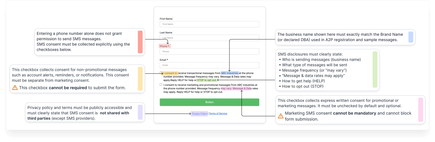 Ensure your opt-in form and website meets the following carrier and platform guidelines.