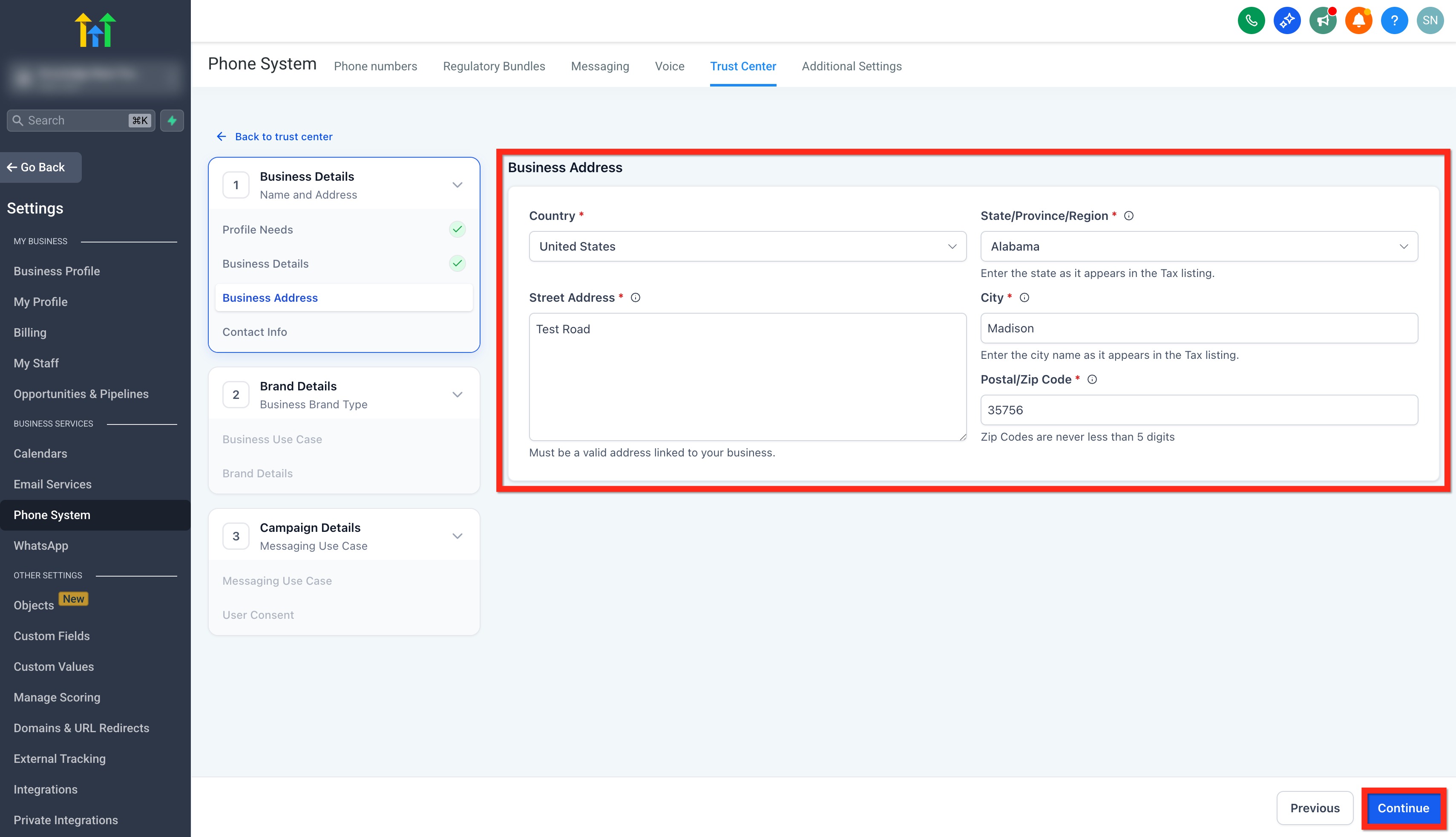 - Add a Phone Number. (DO NOT use numbers obtained using LeadConnector)
