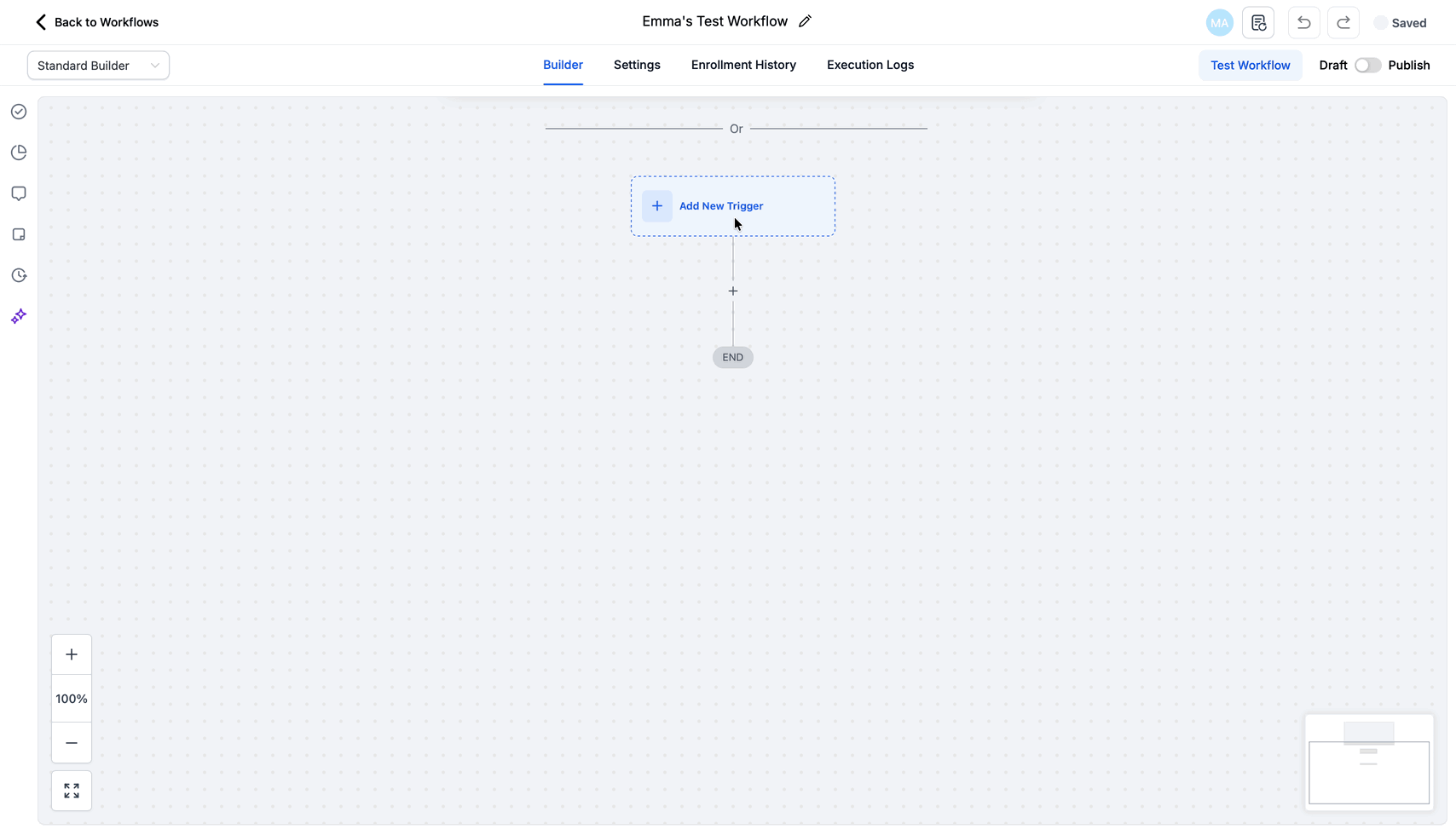 Create a new workflow → Go to Automations → Workflows → Click + New Workflow.