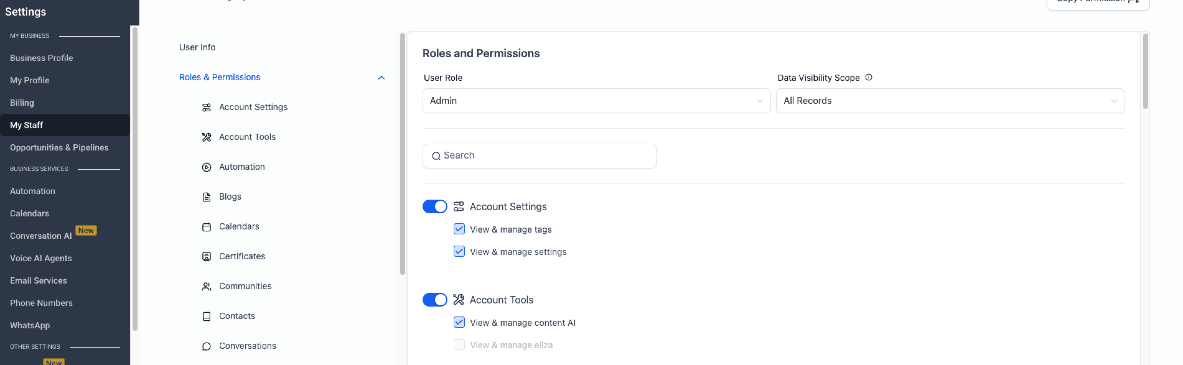 Agency admins can apply granular permissions to their users. You may control the permissions at two levels: