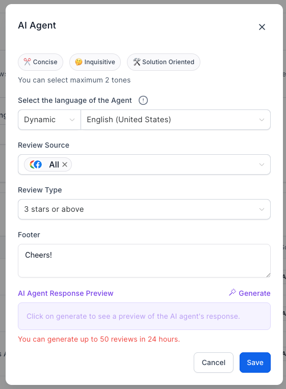Note: Reviews AI Agents are currently available to Agency Users only.