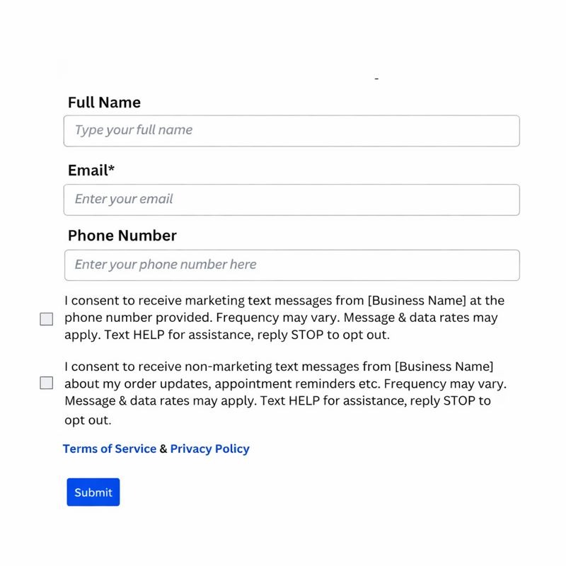 - Consent checkboxes should be separated for both Marketing and Non-Marketing Messages.