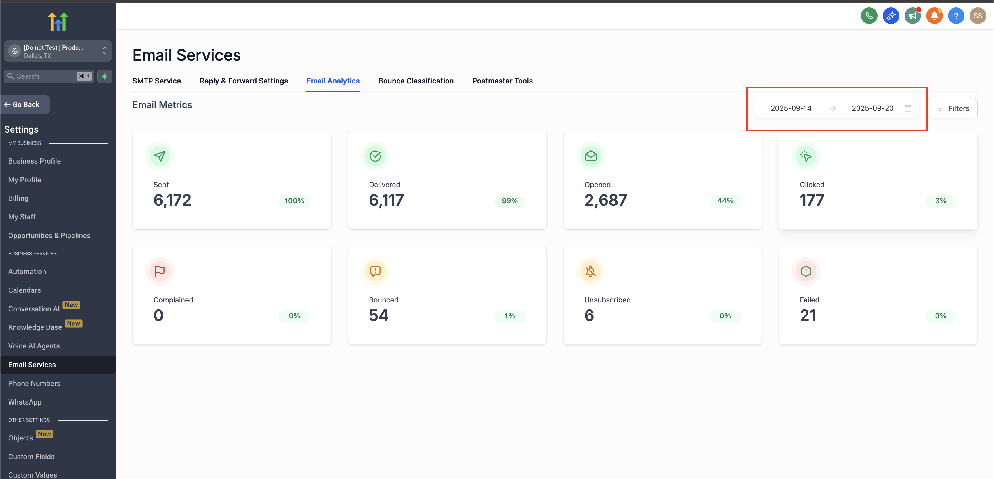 - STEP 3: In Email Services, select the Email Analytics tab on top menu: