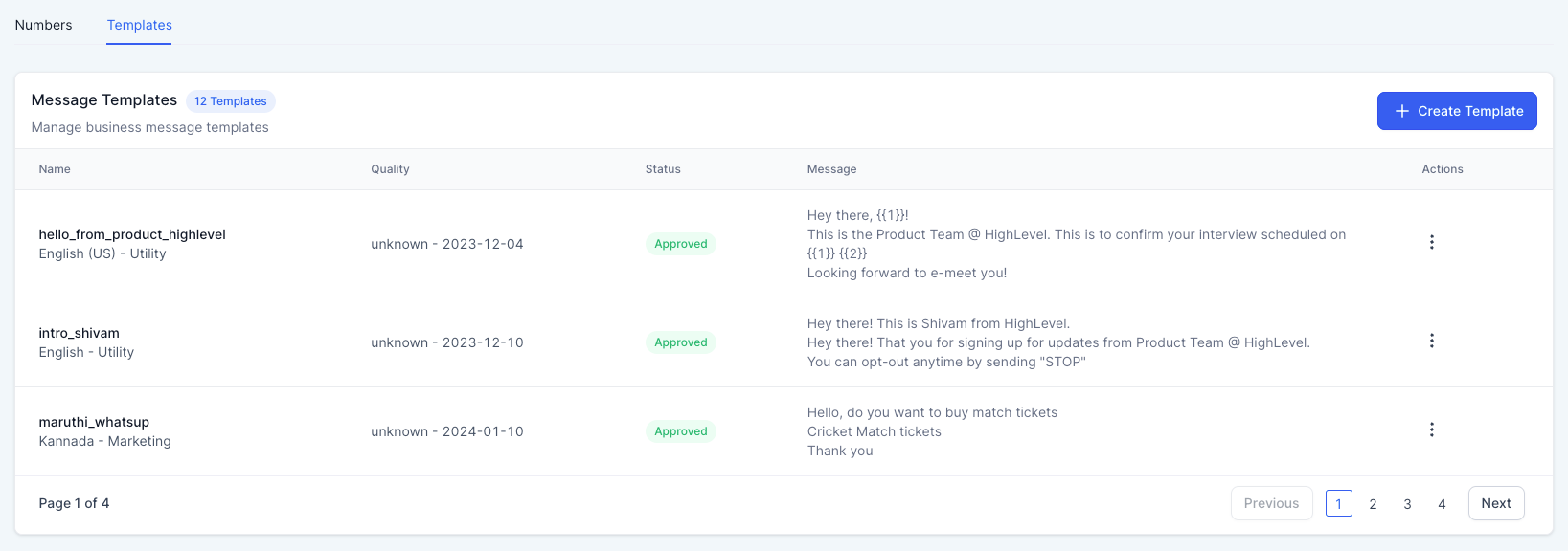 From your Sub-Account, navigate to Settings → WhatsApp → Template tab. Then Click + Create Template