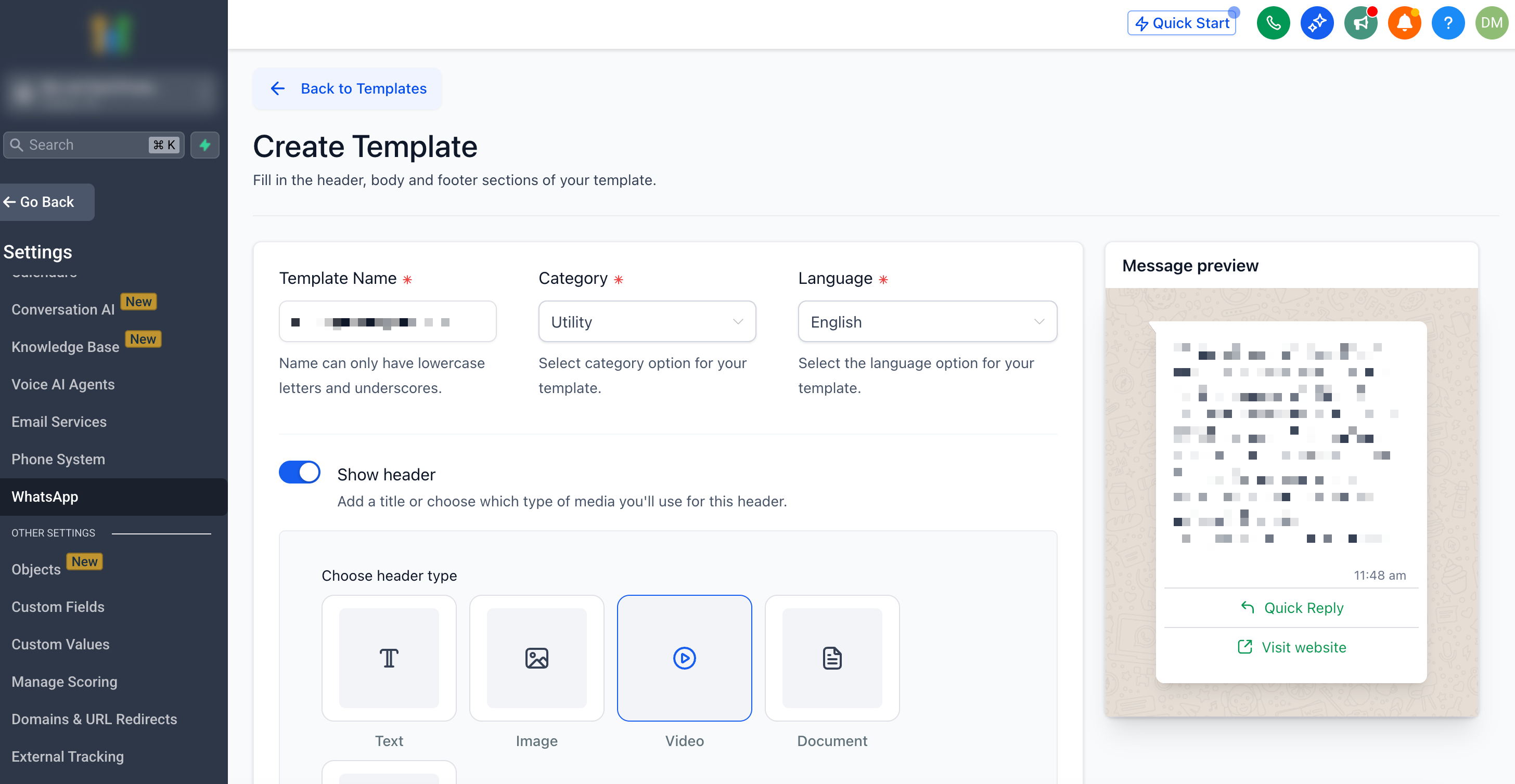 Q: Why the “Create” Button May Be Inactive for WhatsApp Messages in GHL