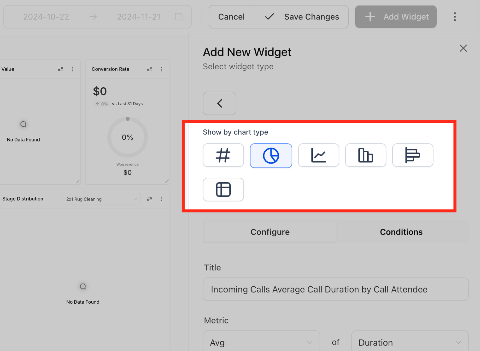 1. Chart Type Selection: Choose how you want your data to be visualized. The chart type selector is now built into the widget settings for quicker access.