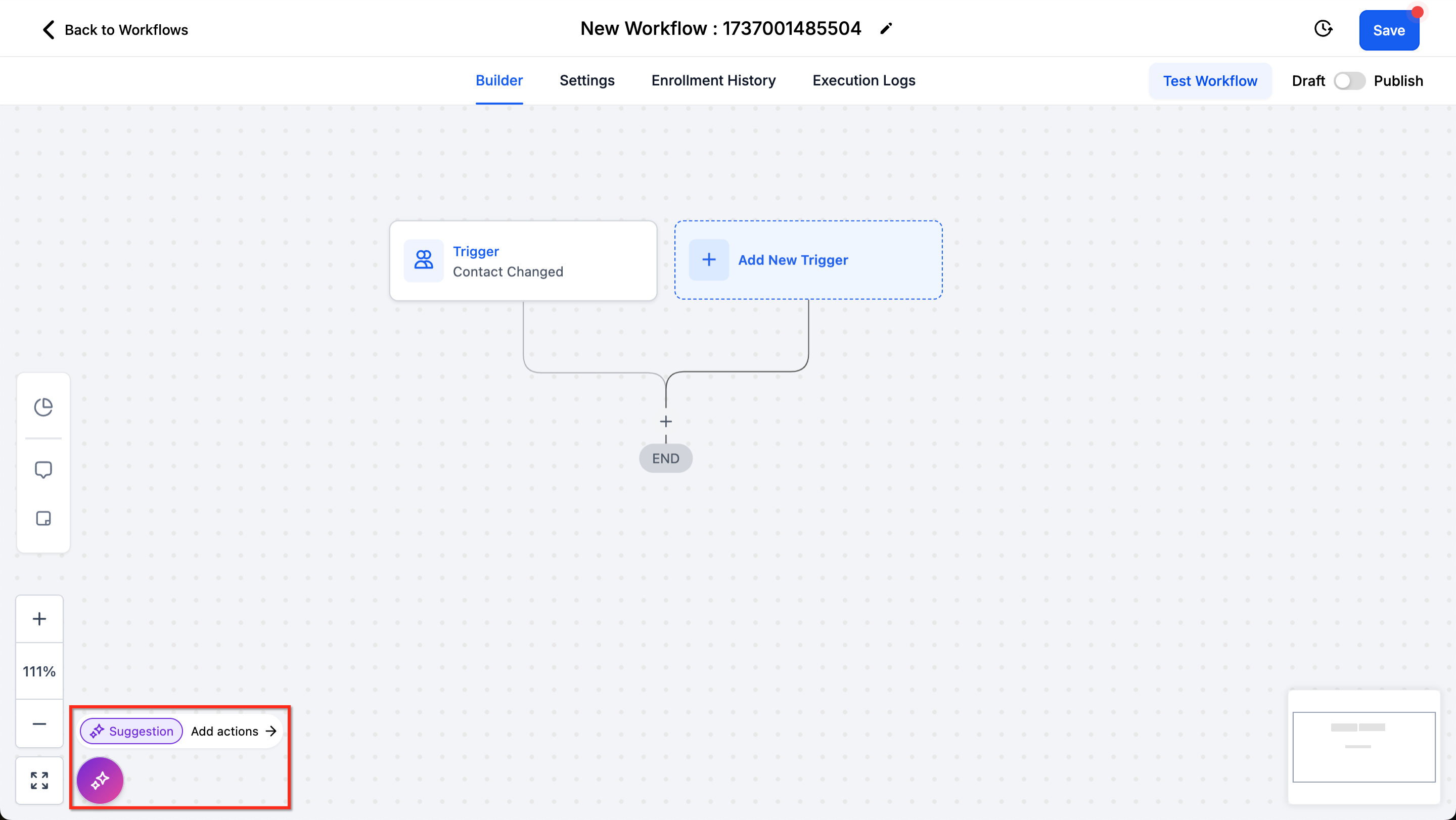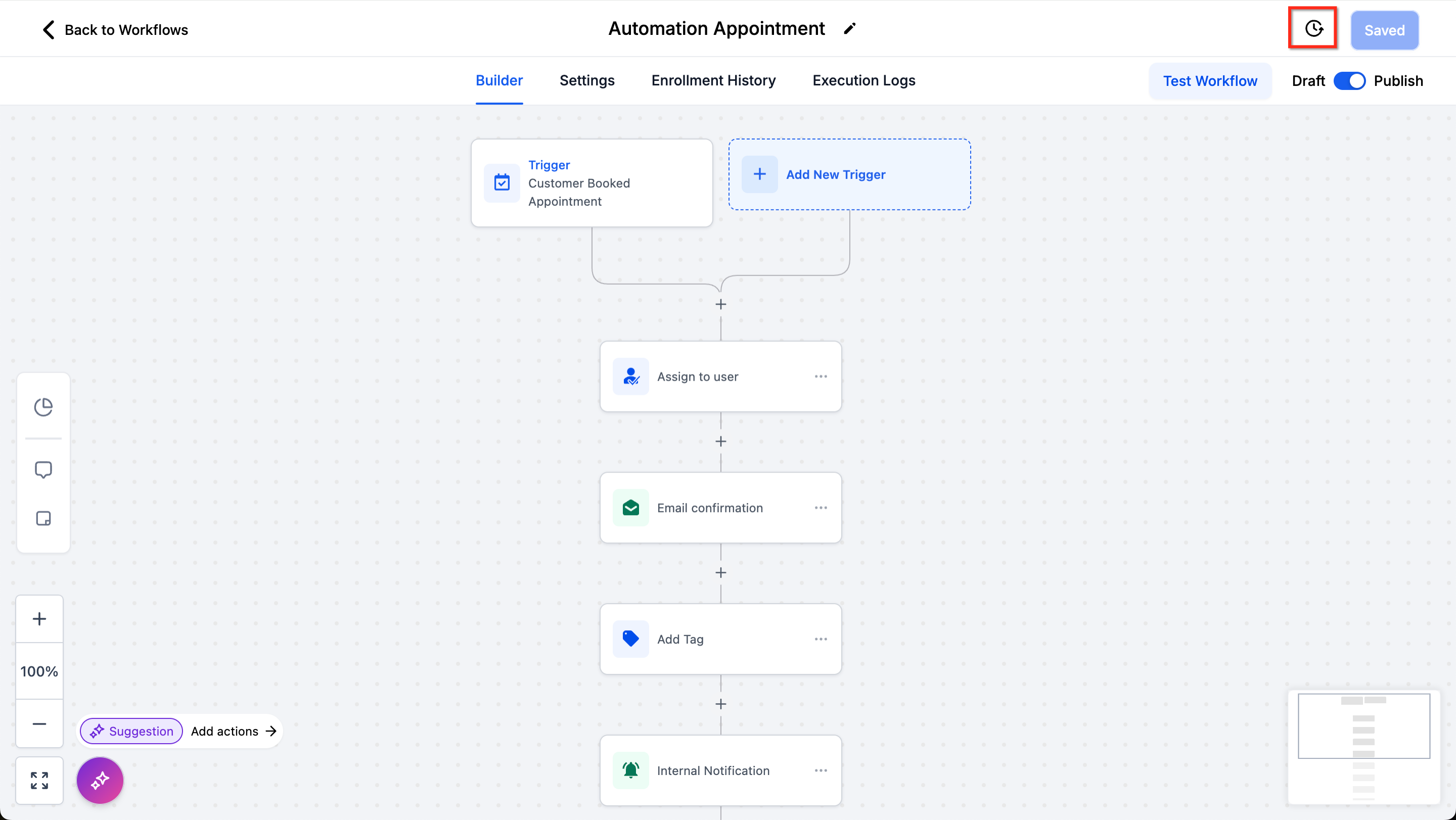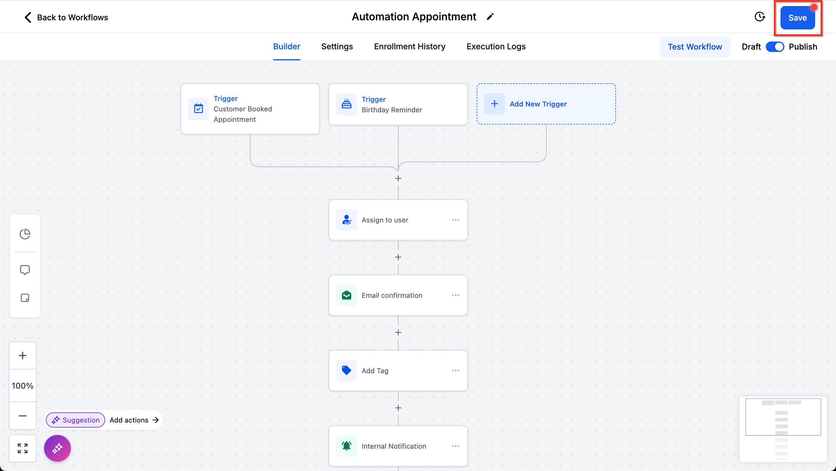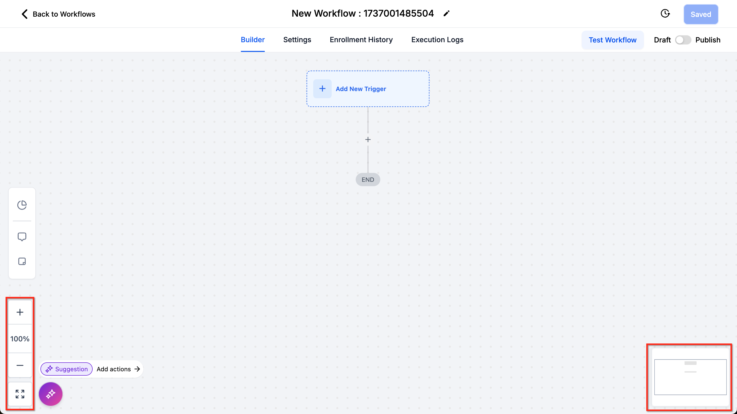 The Workflow Builder’s Infinite Canvas allows for an expansive view of your workflows. You can: