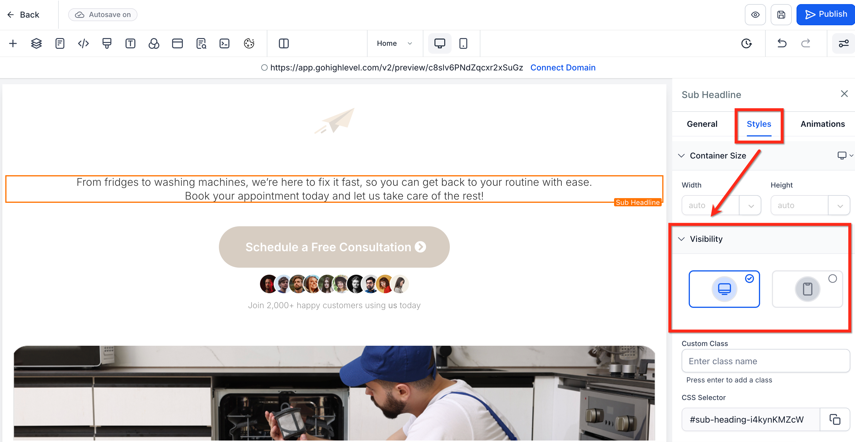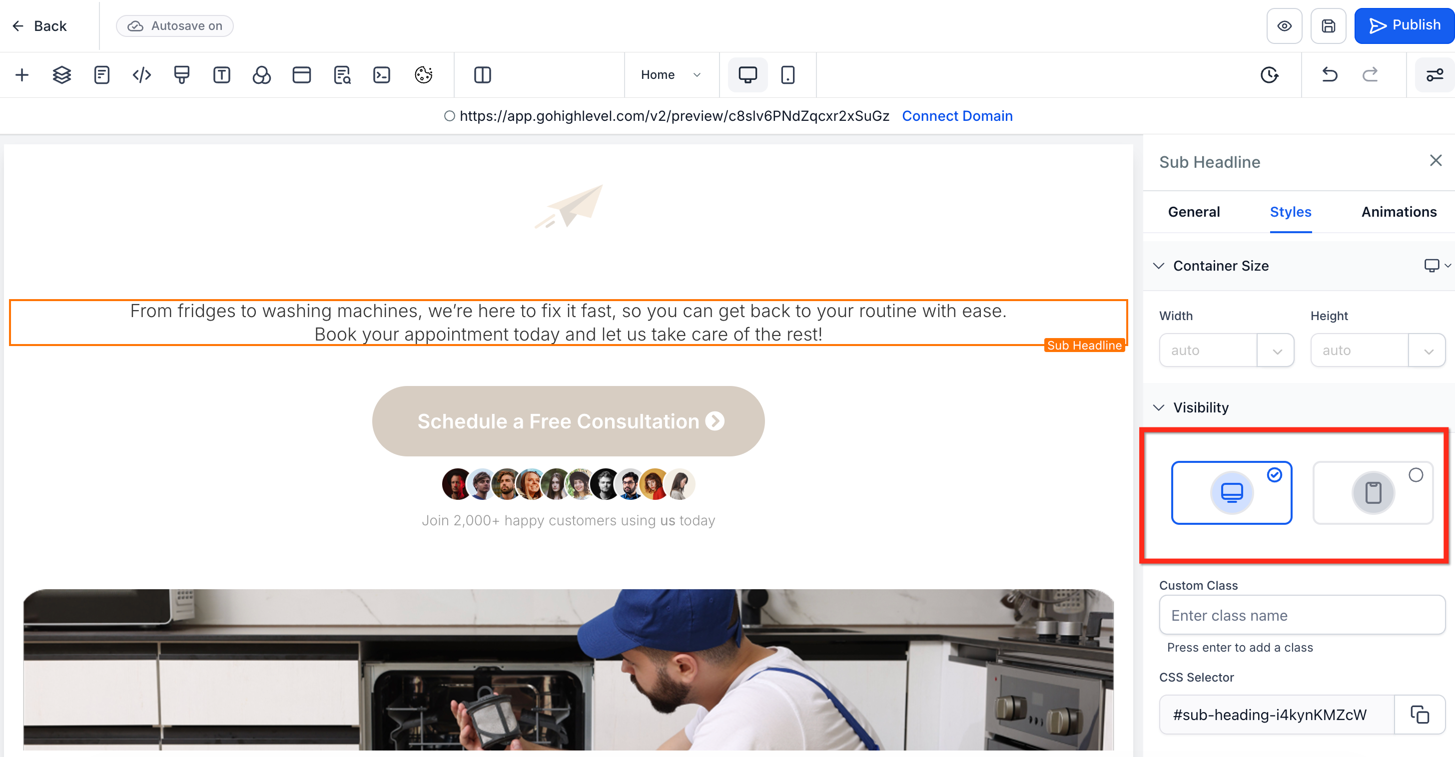 If you've accidentally hidden an element from both desktop and mobile views, you won’t be able to see or click it on the canvas—but you can still access and edit it using the Layers panel in the builder.
