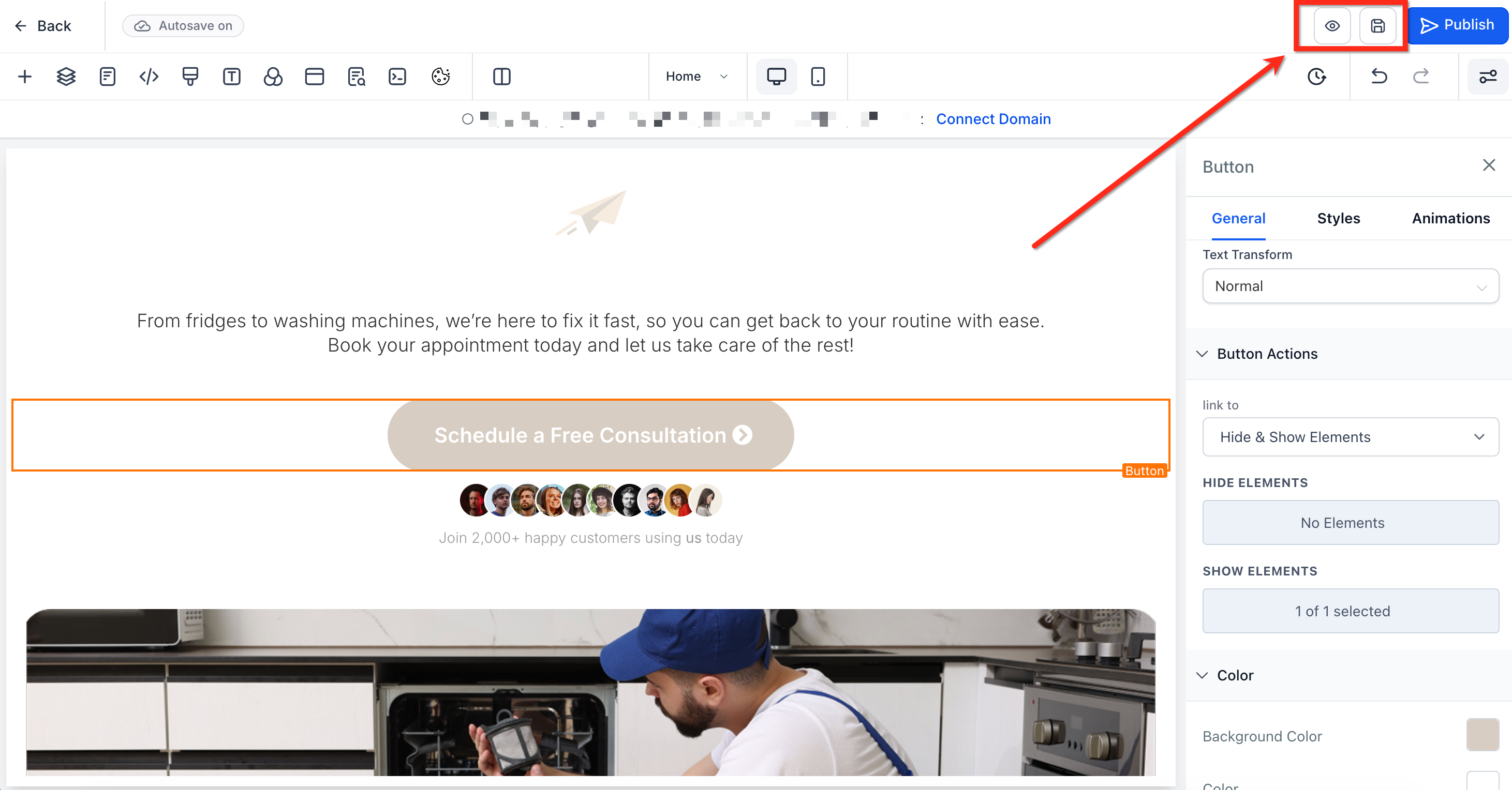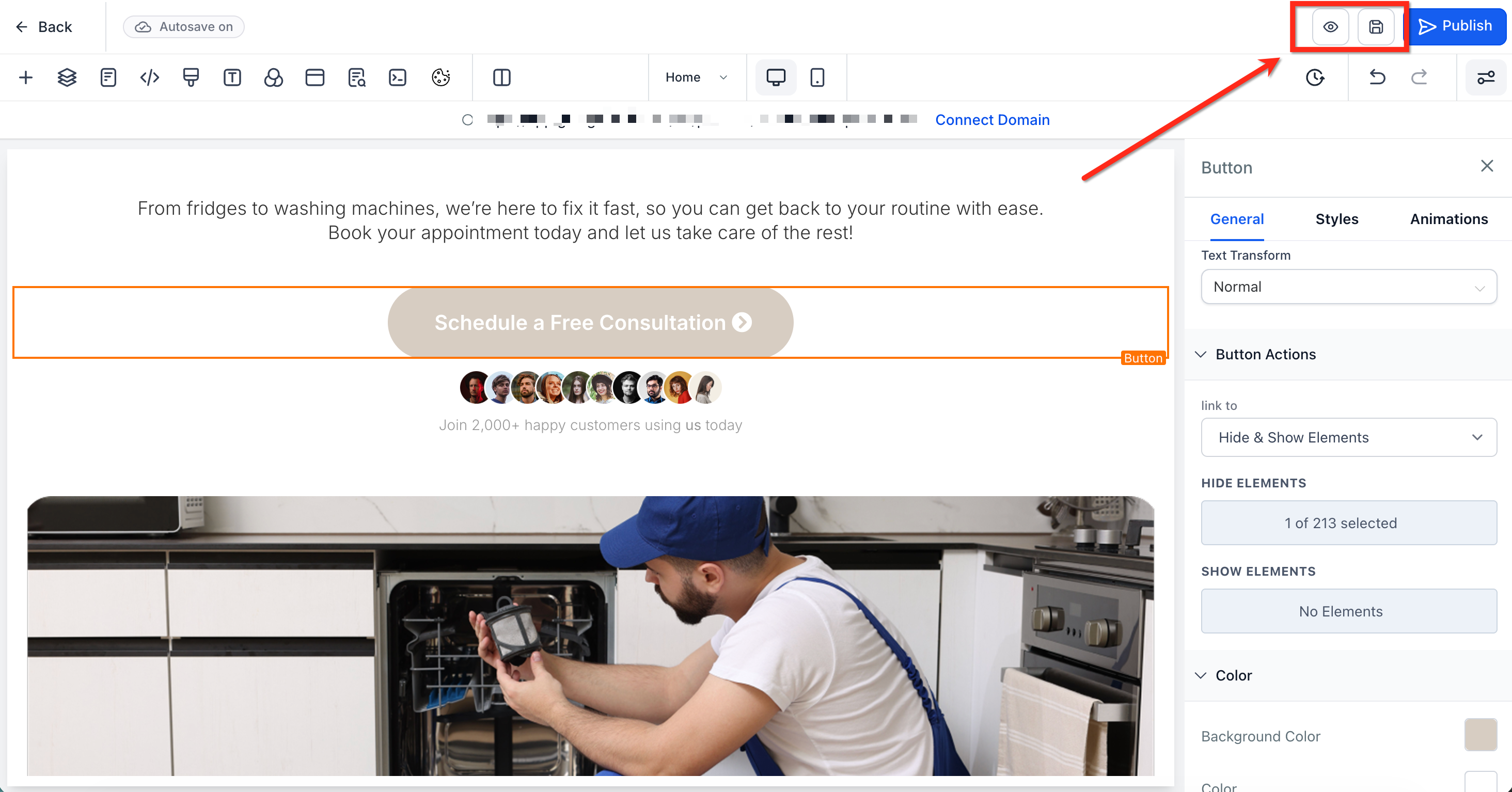 Once done choosing which ones to hide, click the Save button to save your changes or the Preview button to preview and test your funnel or website.