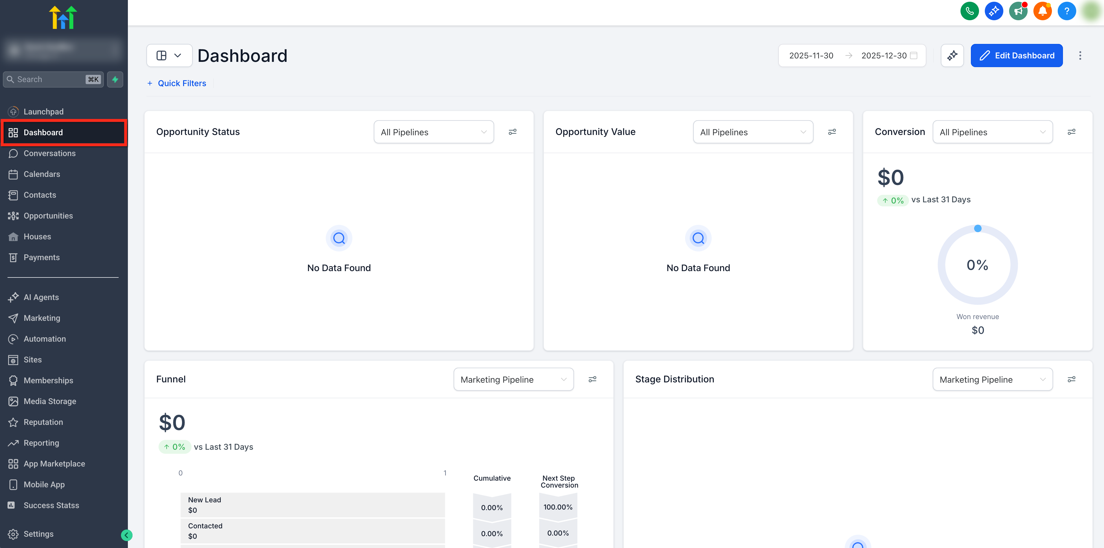 Whether it's your private dashboard or a shared one, navigate to the dashboard you want to customize by selecting Dashboard on the left-side navigation bar.