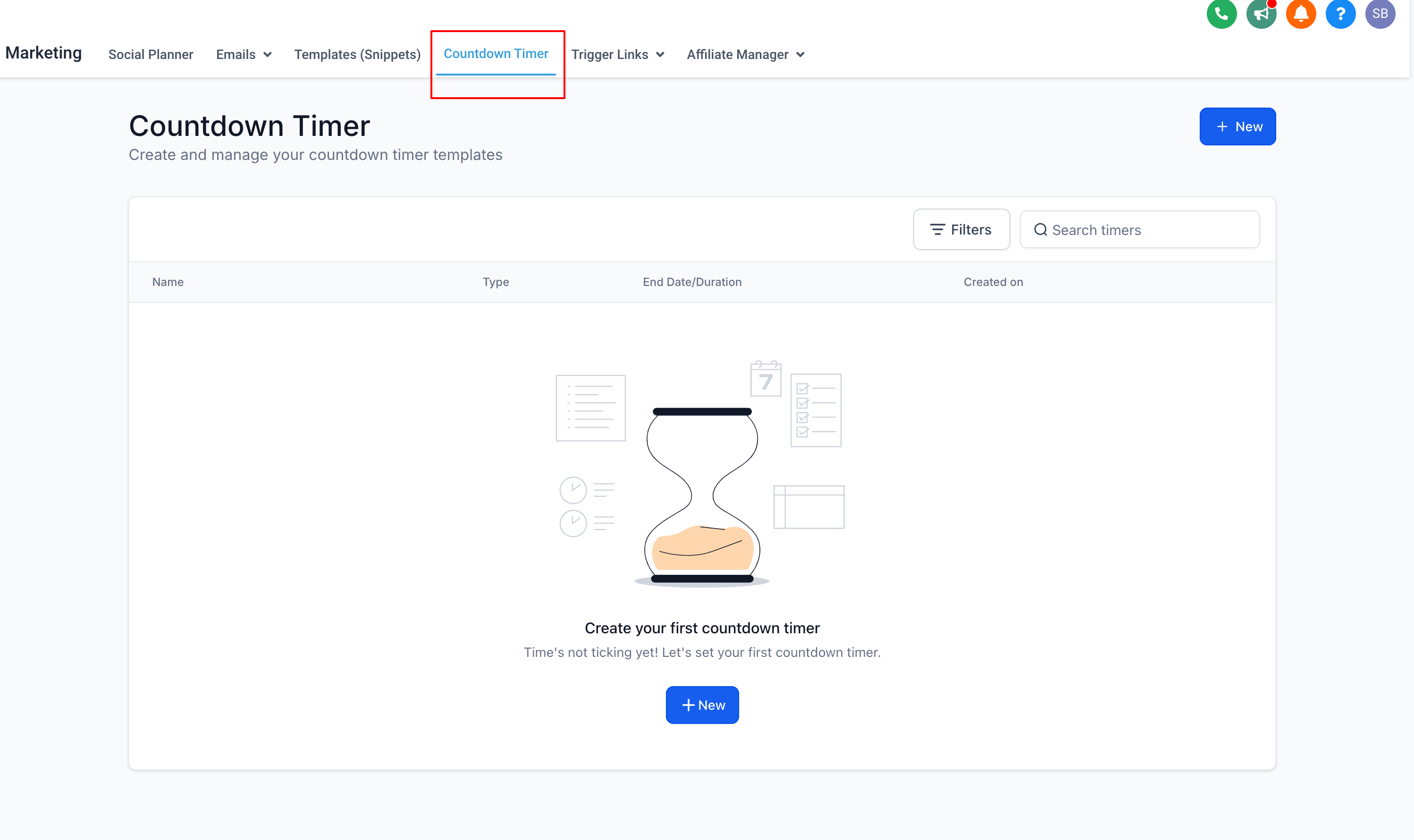Click on New: Click the "New" button to start creating your timer.
