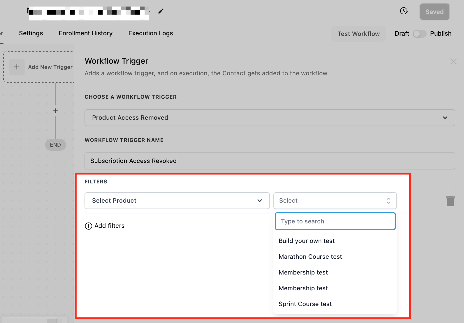 Click “Add New Trigger” and select "Product Access Removed" from the dropdown menu.