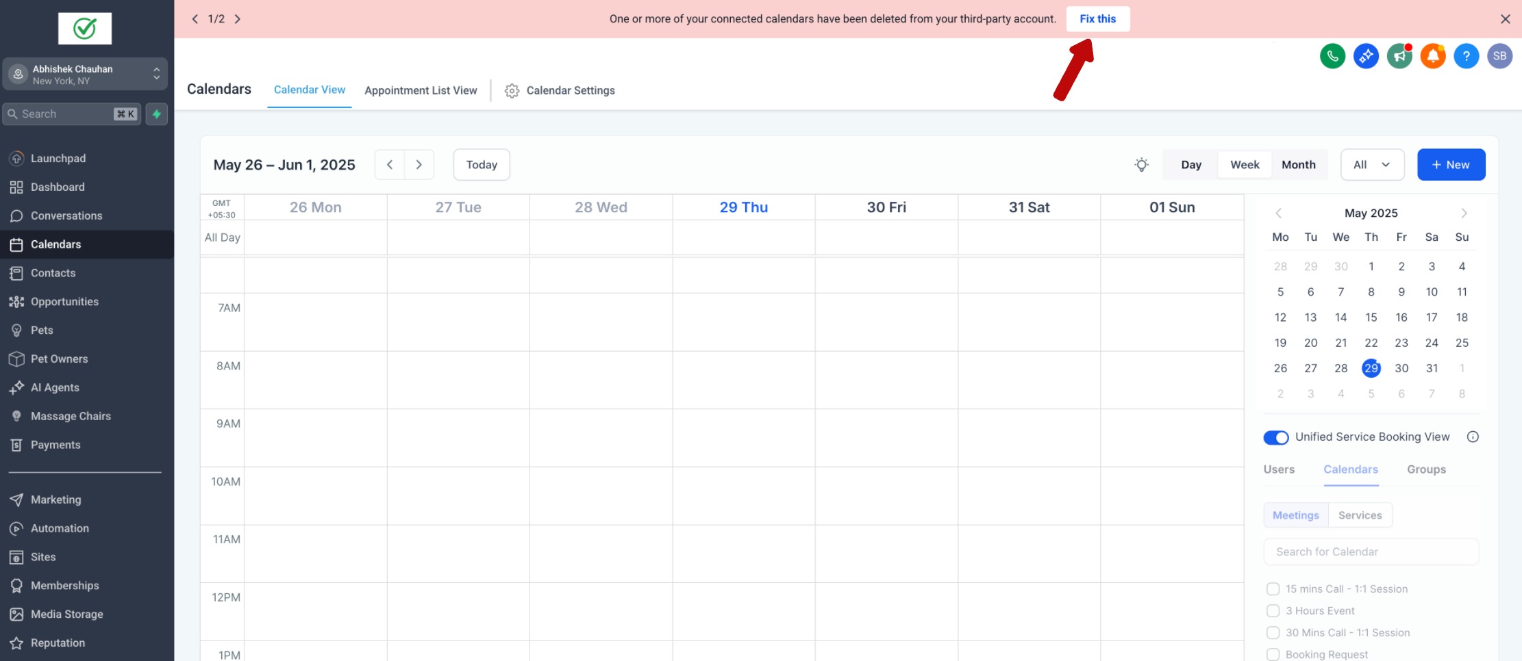 If a connected Google/Outlook calendar was deleted at the provider, HighLevel may show an error banner. You can now clean this up without contacting Support.