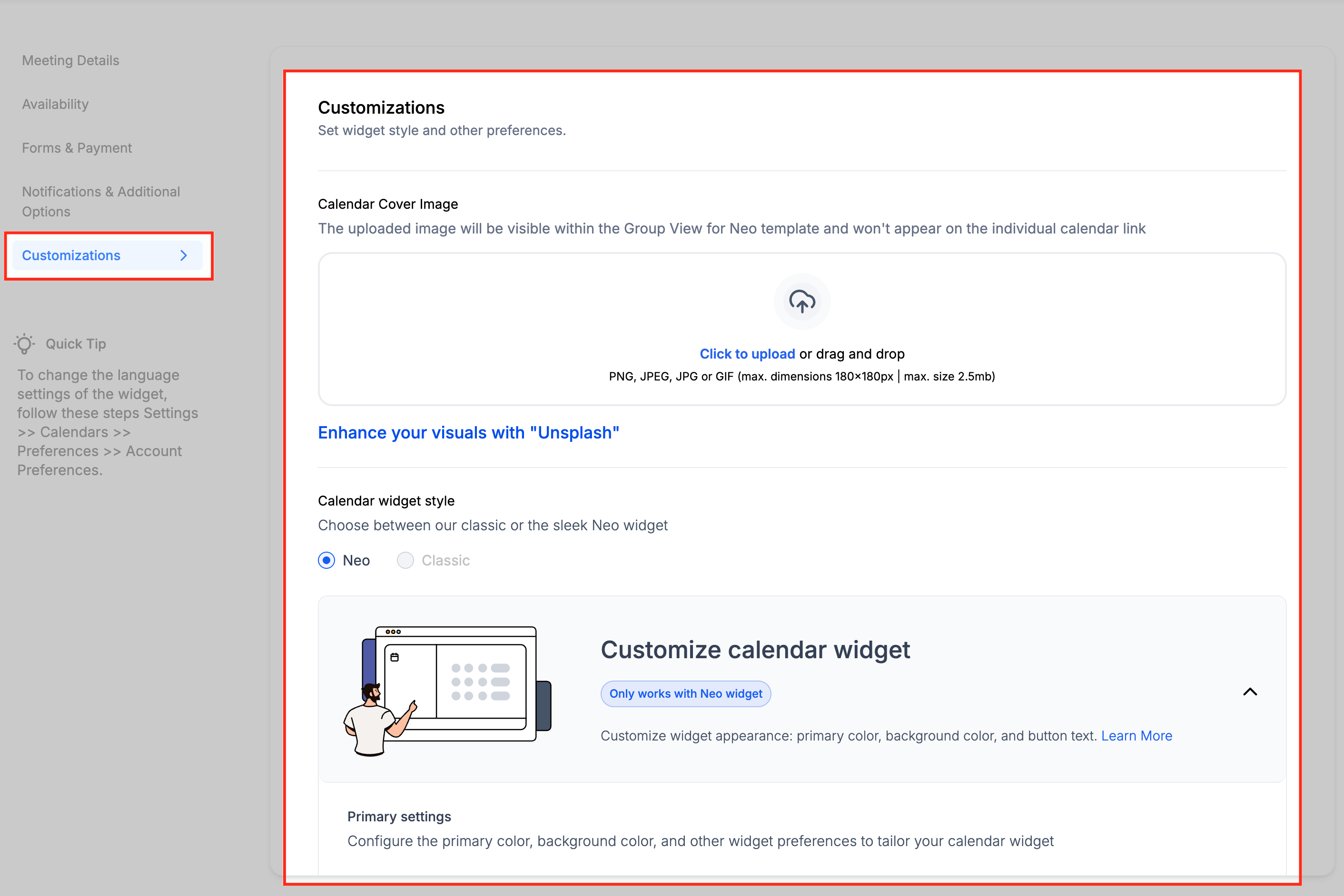 - Calendar Widget Style: Choose between the modern Neo or classic layout for your booking widget.