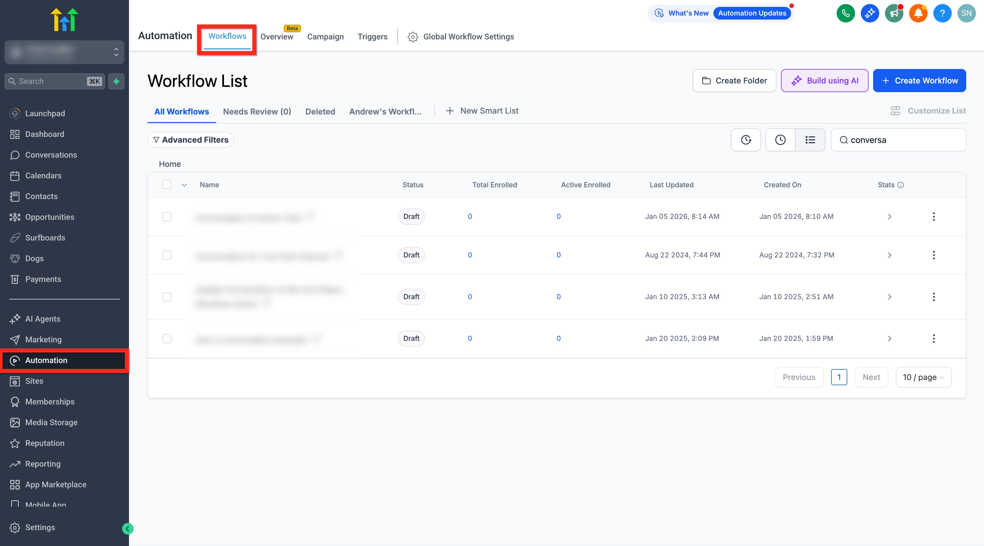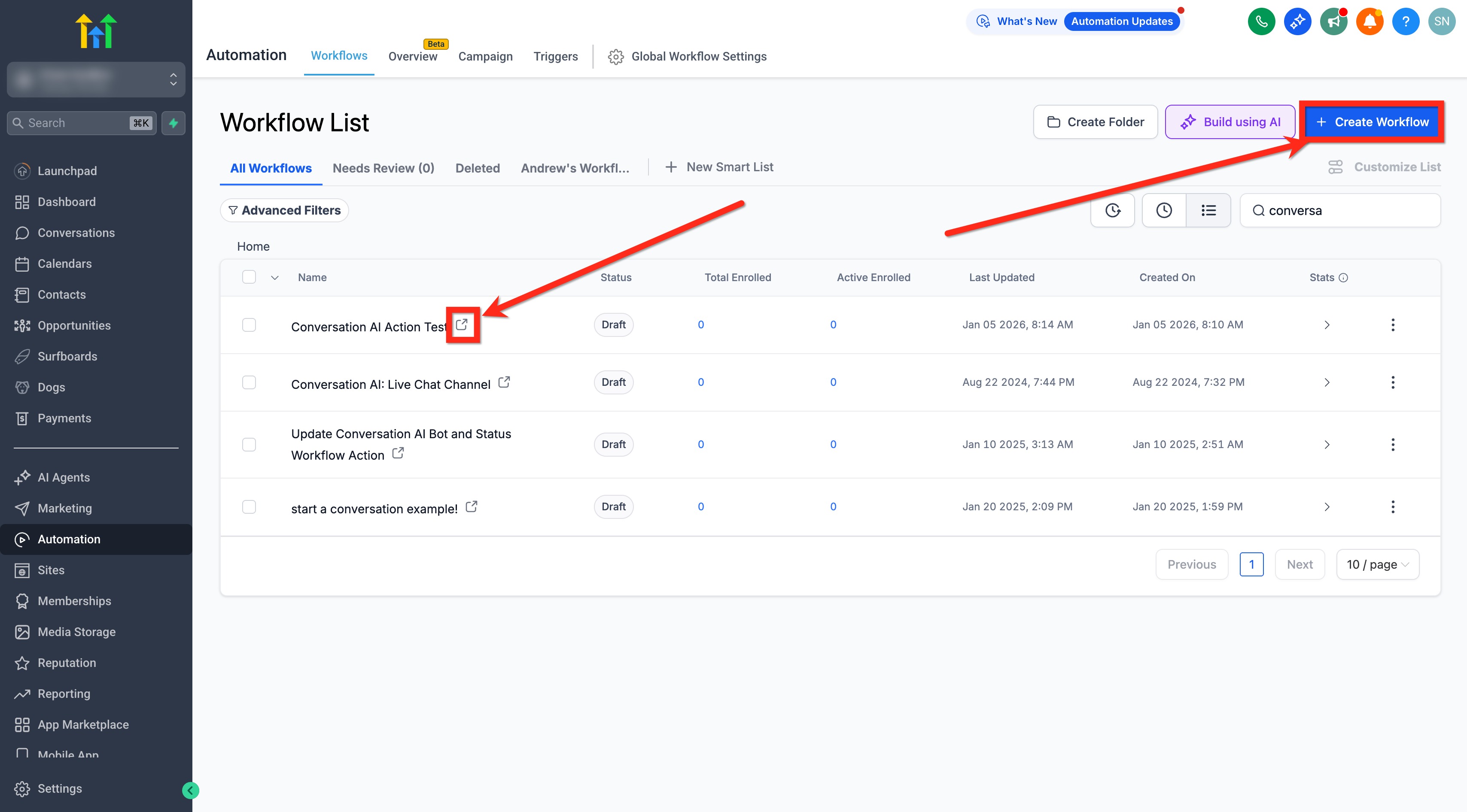 Go to Automations > Workflows.