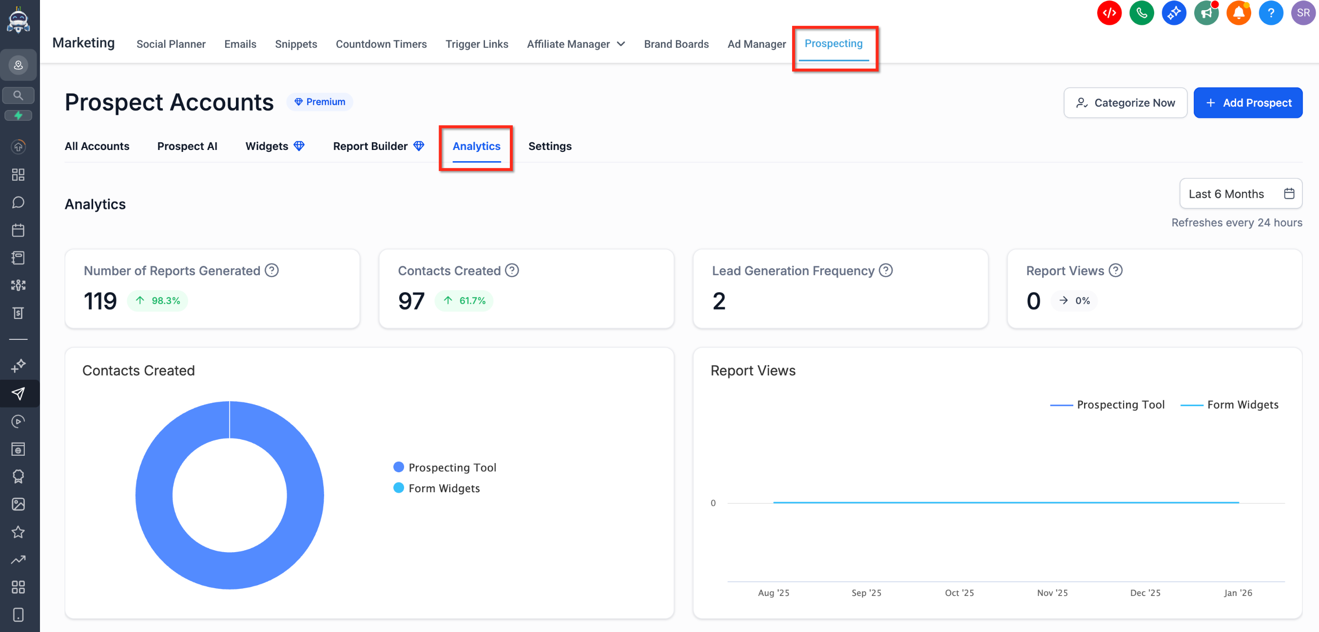 Leads Generated: Track how many new leads have been brought in from your reports, allowing you to measure the effectiveness of your prospecting efforts.
