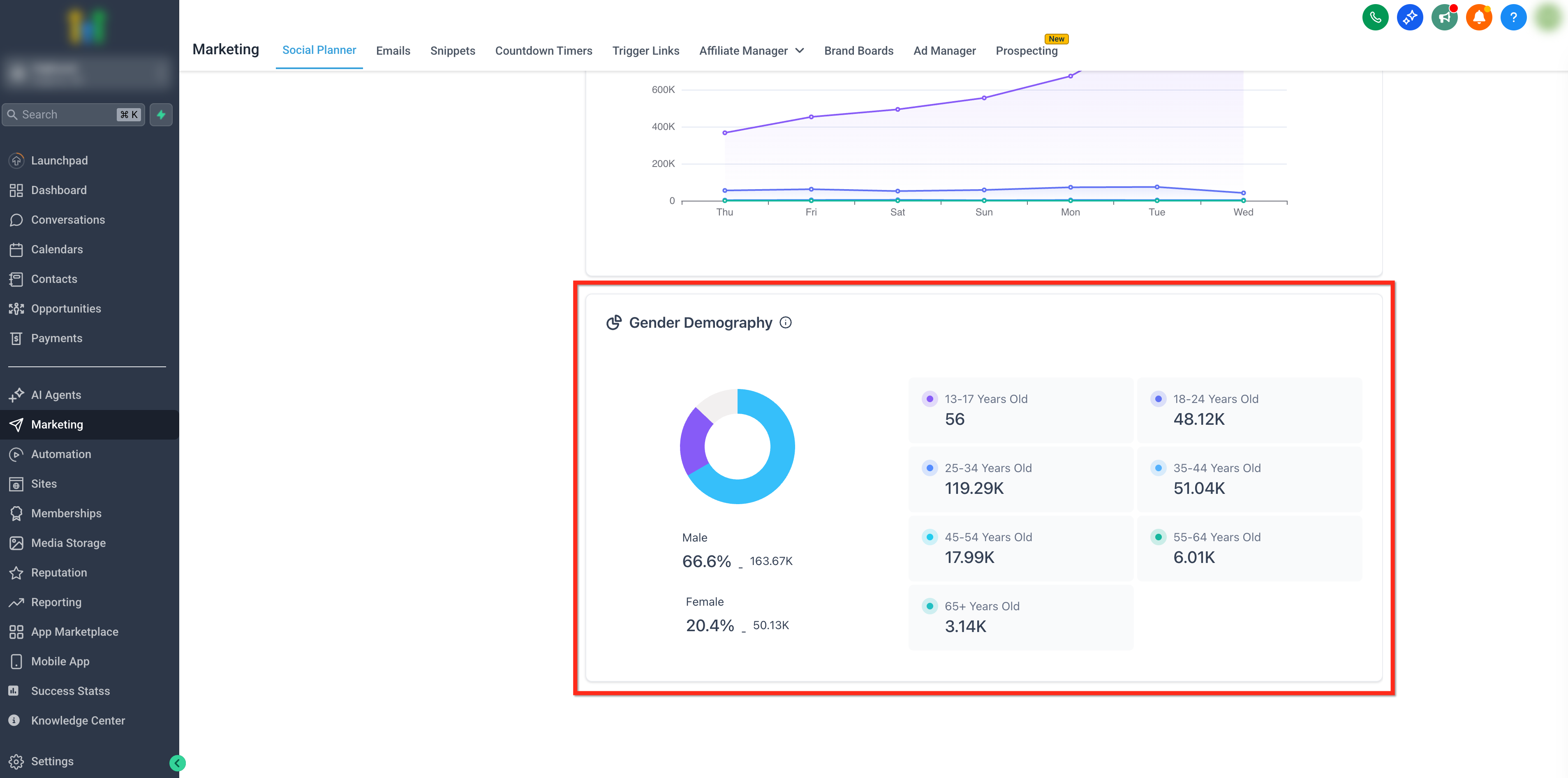 - Gender and Age Demographics: See your audience breakdown in terms of age groups and gender, providing valuable data to optimize your content for the right audience.
