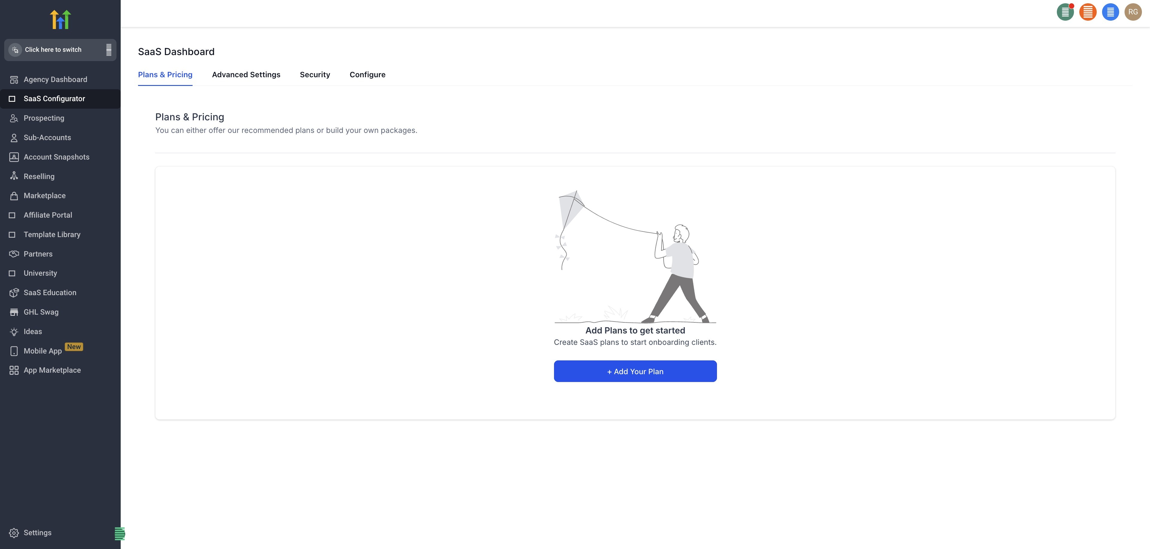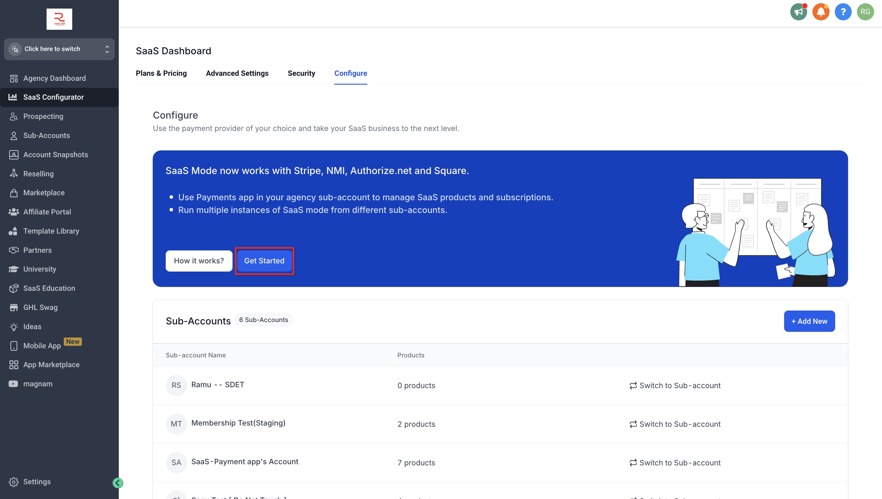 In Agency view, open SaaS Configurator. If your agency has not completed SaaS setup, the checklist appears in the configurator.