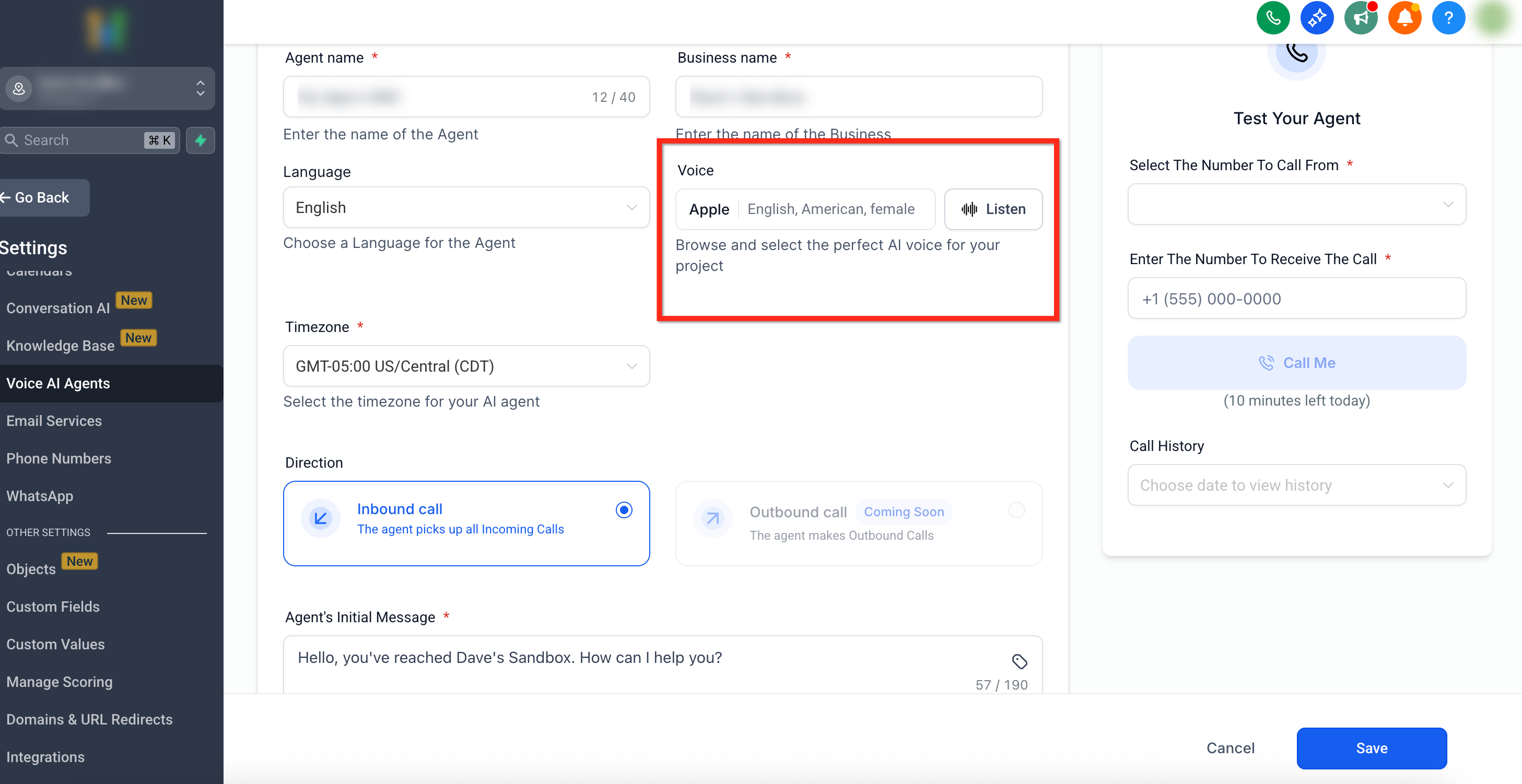 Select the Correct Language – The Voice Agent will only process and respond in the language configured, so ensure you choose the right one during setup.