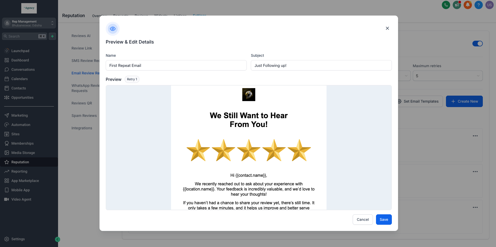 Reputation Management now allows users to personalize recurring review request emails using custom templates. This feature helps businesses create more engaging and tailored interactions, improving brand consistency and increasing customer engagement.