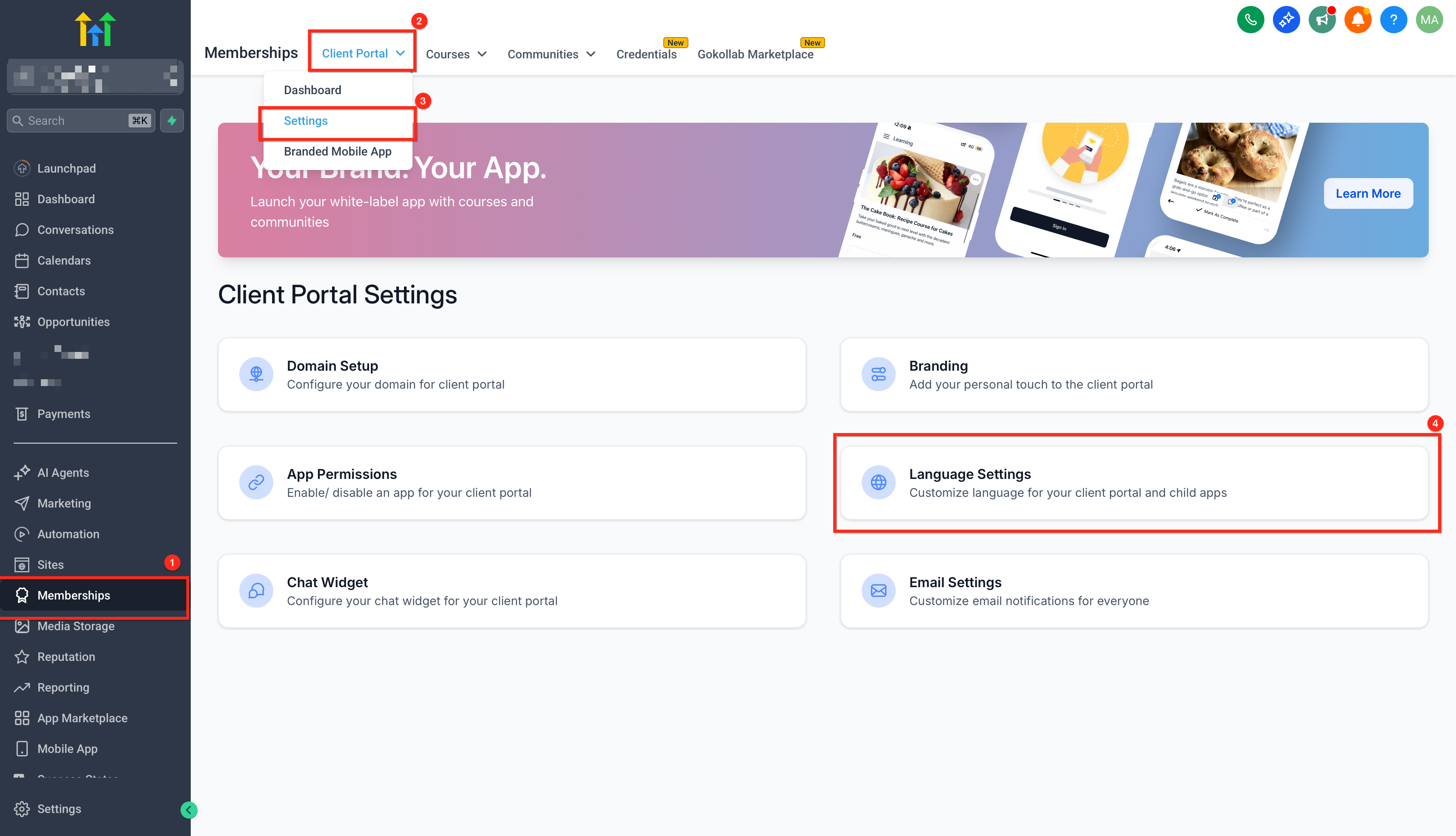 - Go to Memberships → ClientPortal → Settings → Language Settings