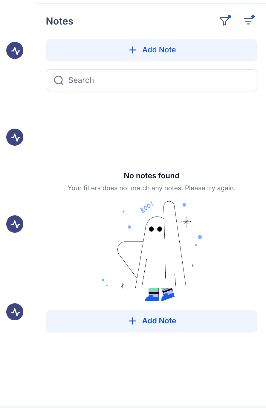 View and manage notes conveniently in the Notes tab under Contacts or Opportunities.
