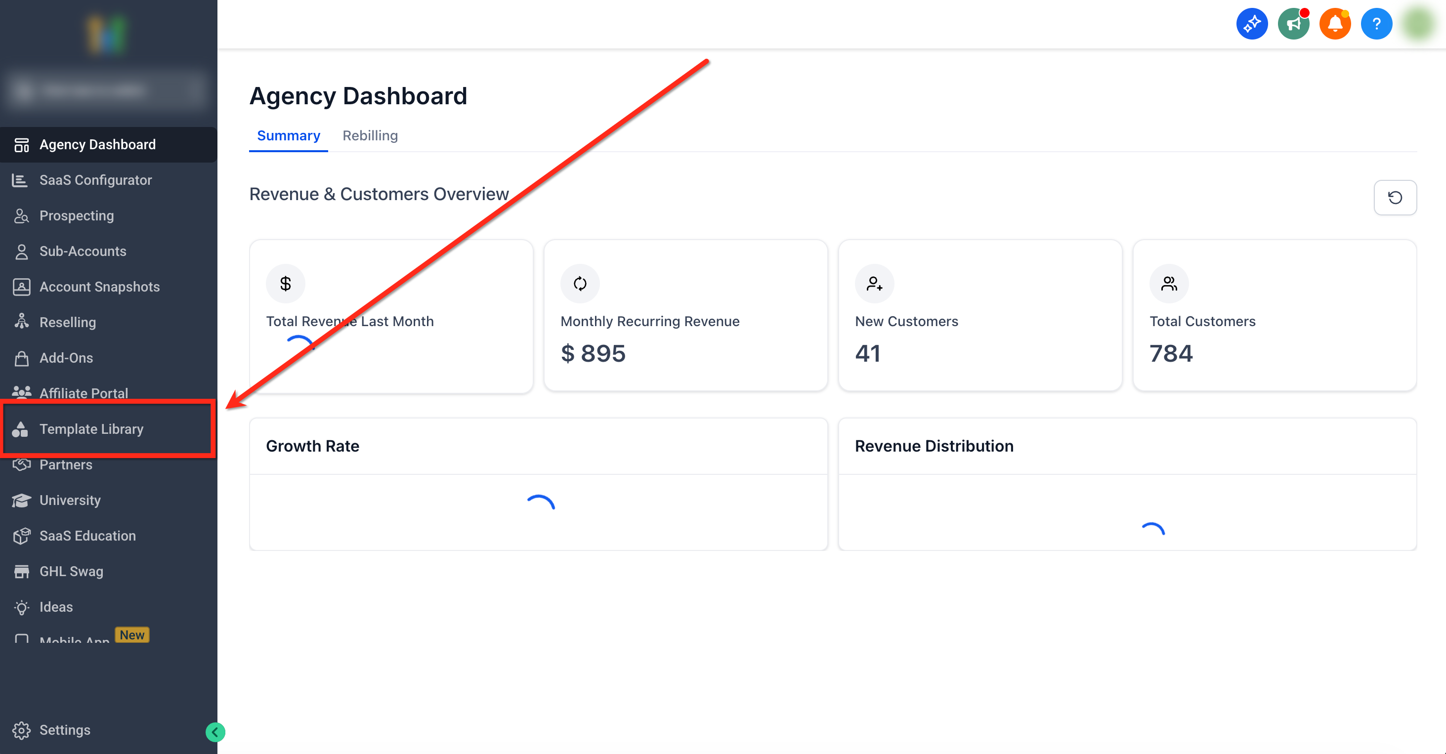 Log in as an agency admin. From the Agency Dashboard, navigate to the main menu and select Template Library