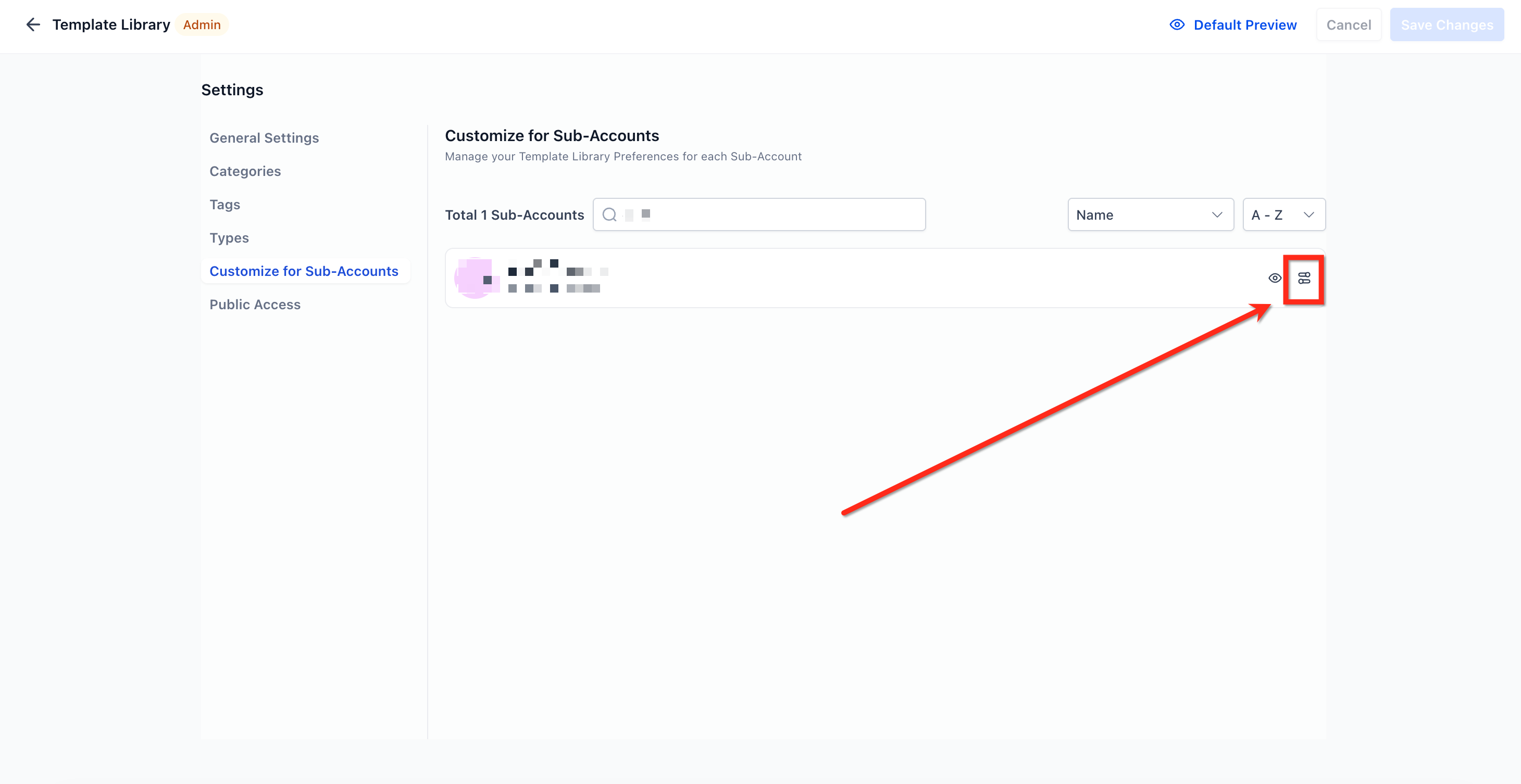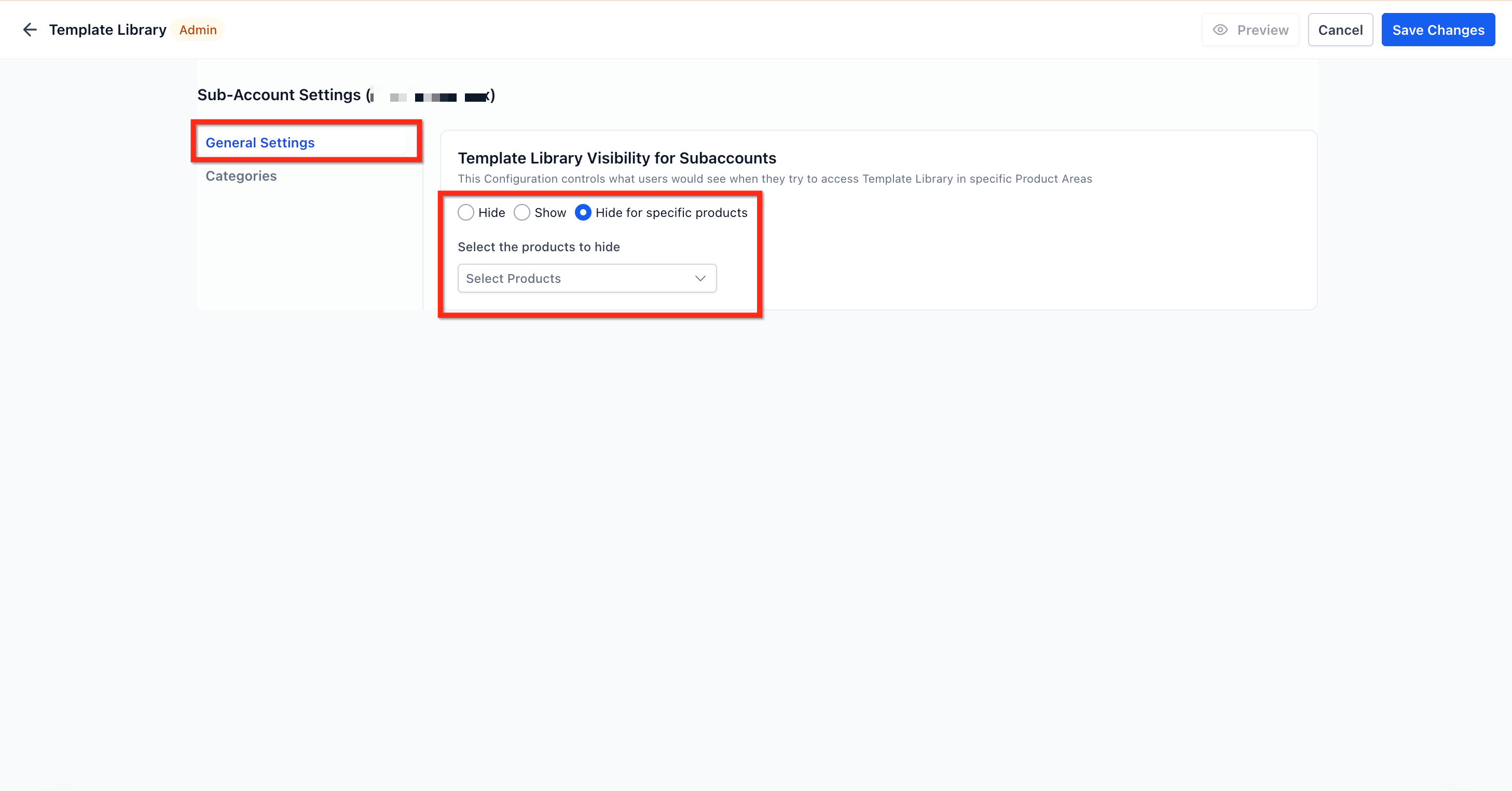 Follow these steps to quickly and easily configure visibility of the template library for specific sub-accounts.