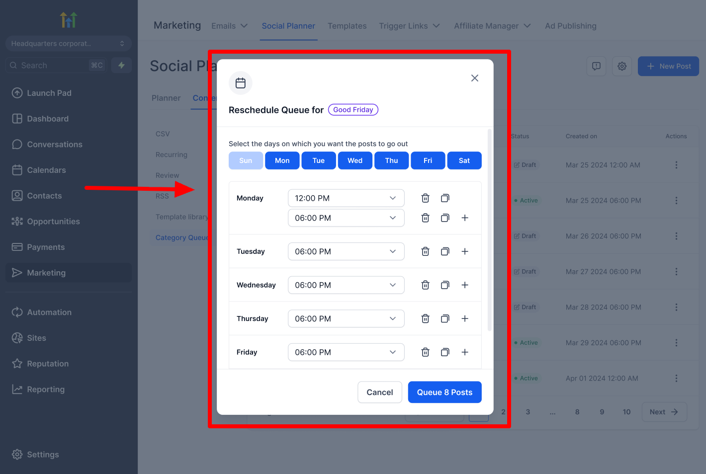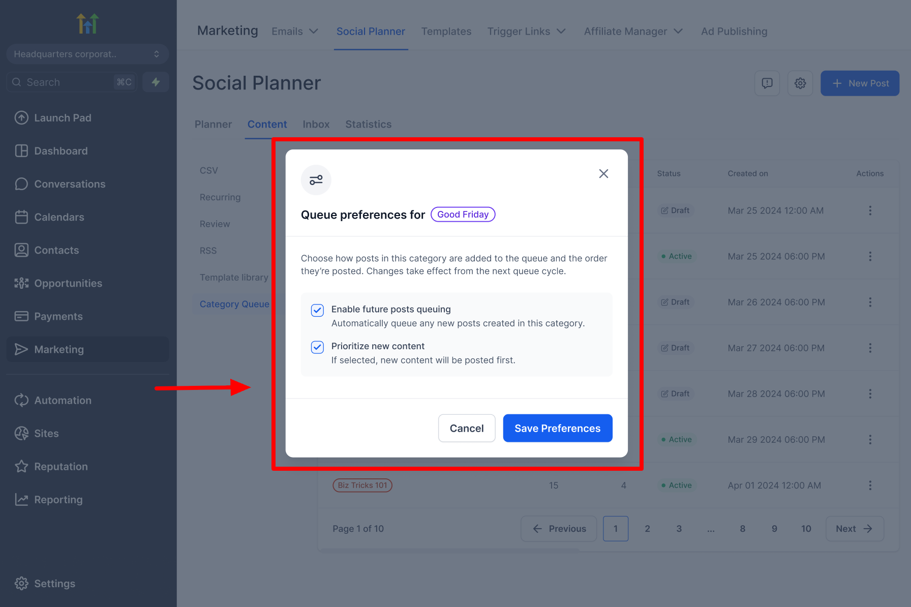 Looking to automate and repurpose your evergreen content with ease? HighLevel’s Category Queue feature streamlines your content strategy by allowing you to group posts by category and schedule them to publish in a recurring loop. This article walks you through how Category Queues work, how to set them up, and best practices for maximizing content reach across your platforms.