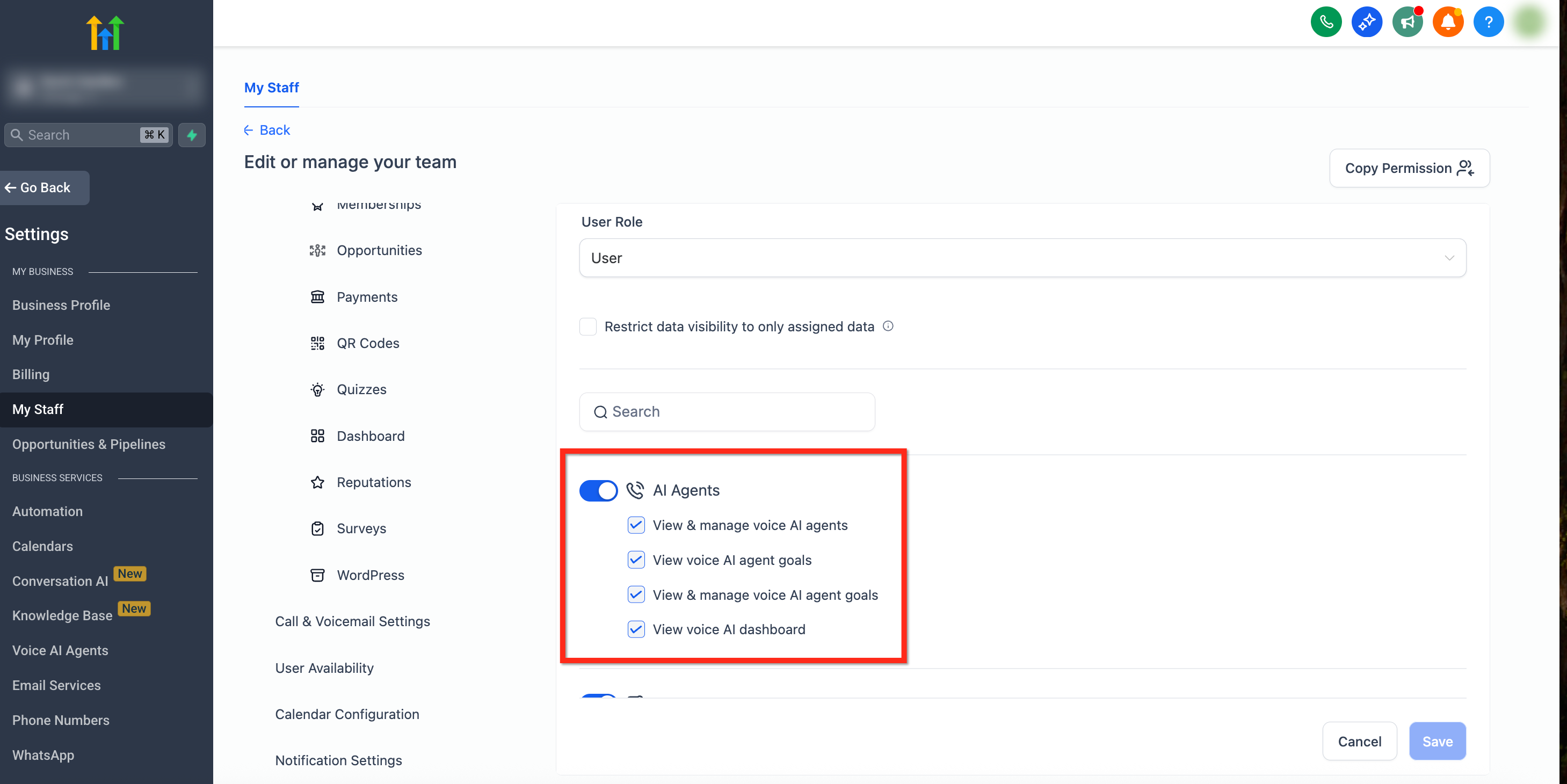 Granular permissions for Voice AI Agents give account owners pinpoint control over who can view, configure, and analyze AI‑powered voice agents. Whether you're managing a large team or onboarding new roles, these settings help protect agent logic and streamline team workflows