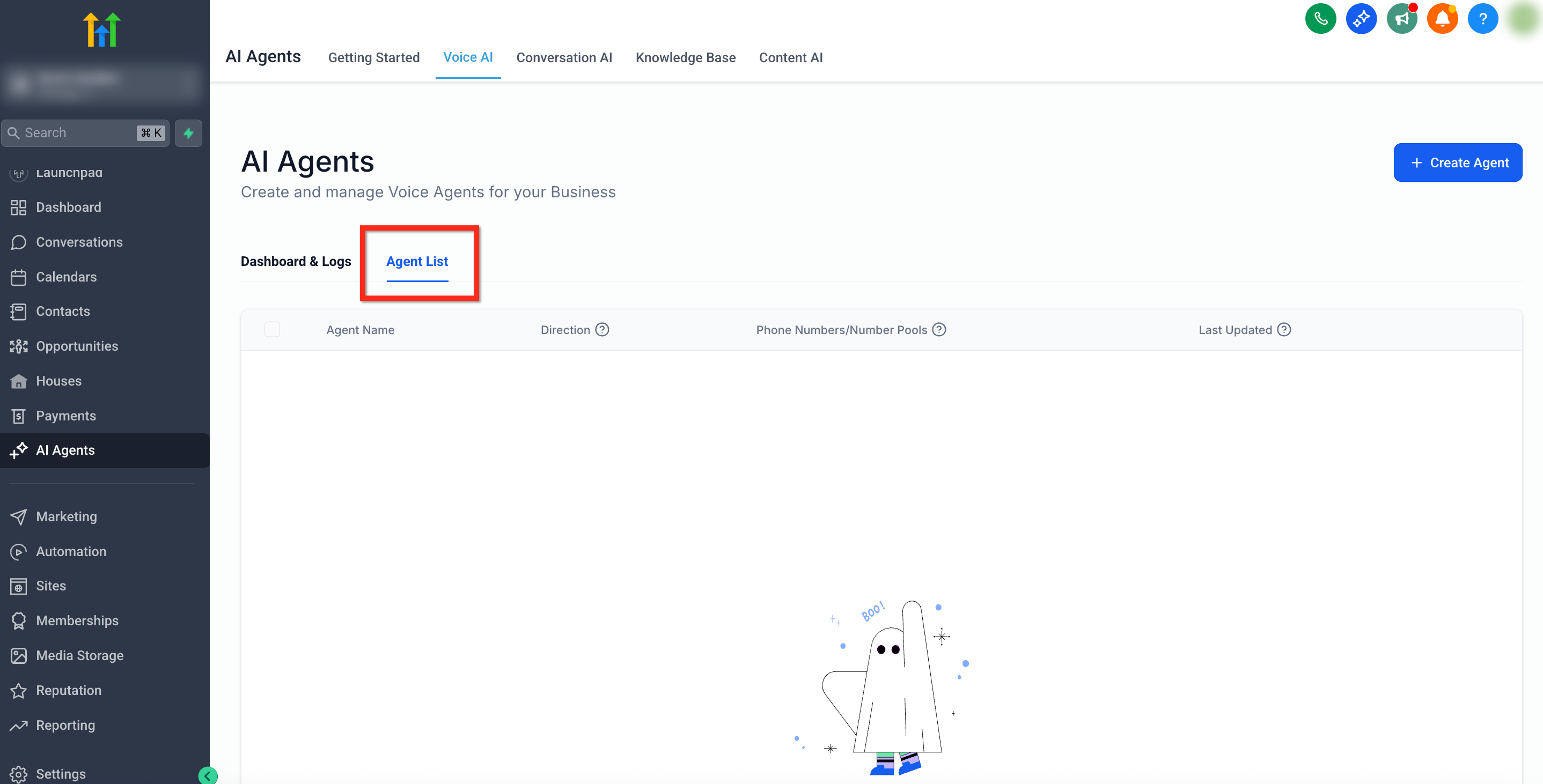 - The Voice AI Agents list is hidden entirely