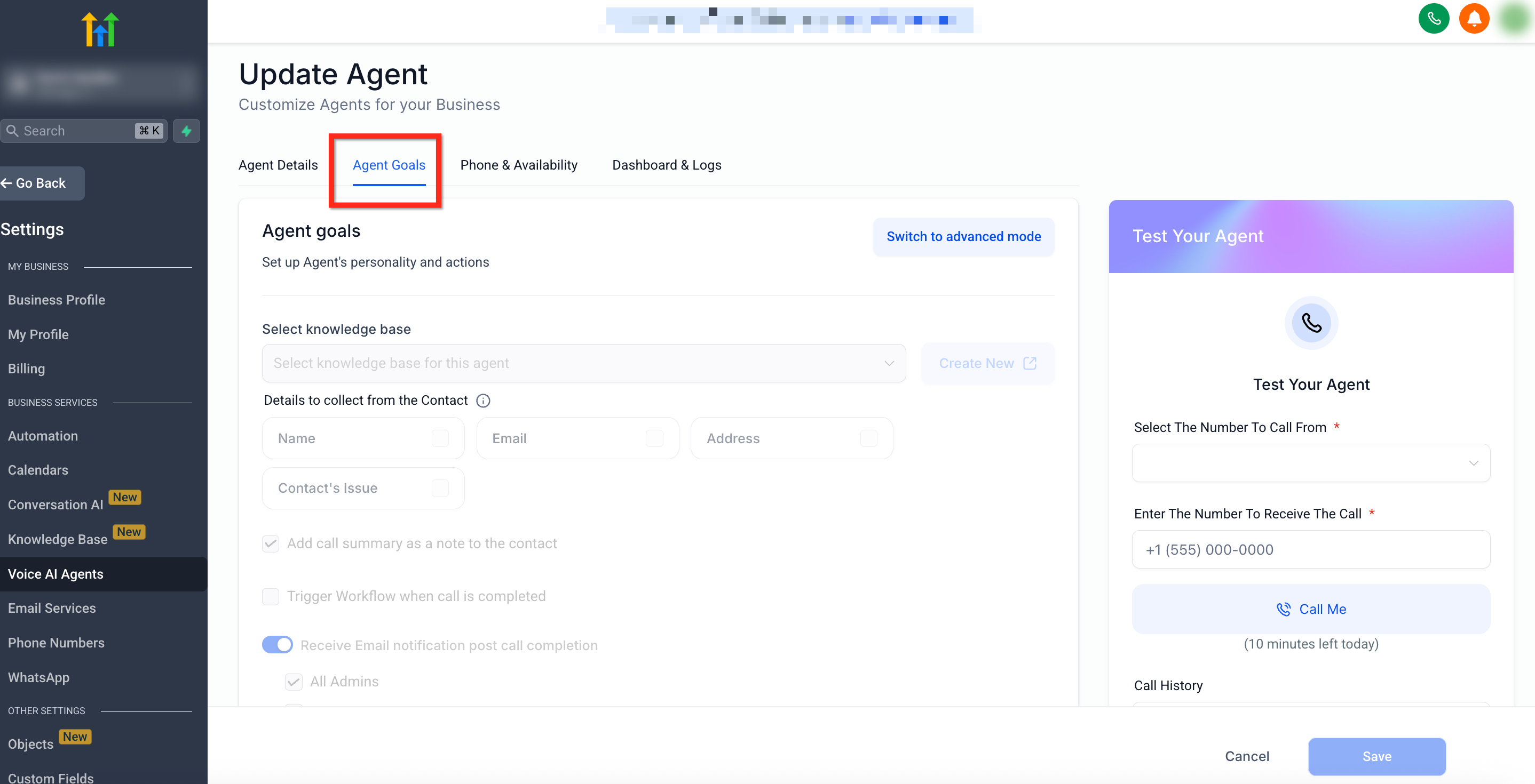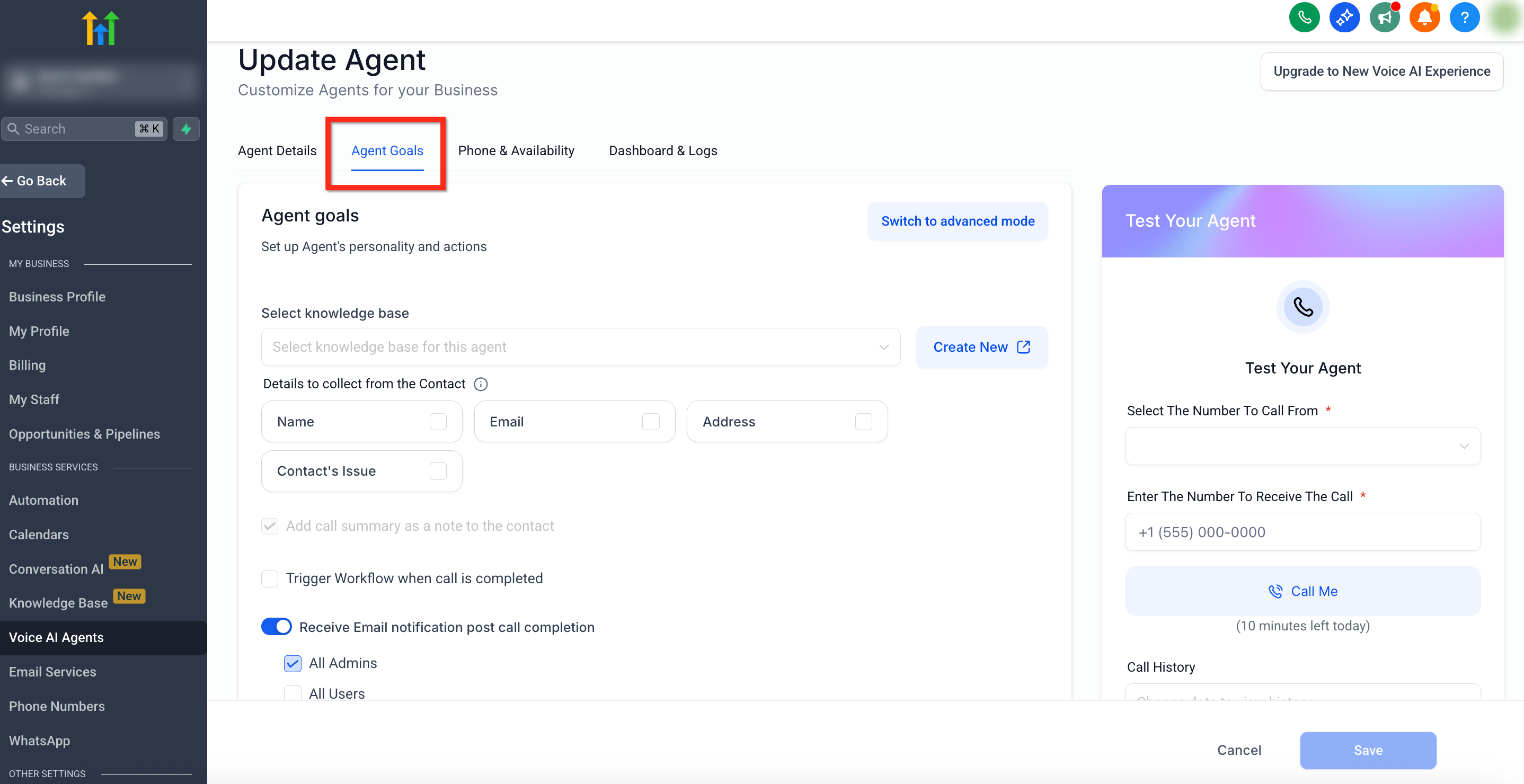 3. View & Manage Voice AI Agent Goals
