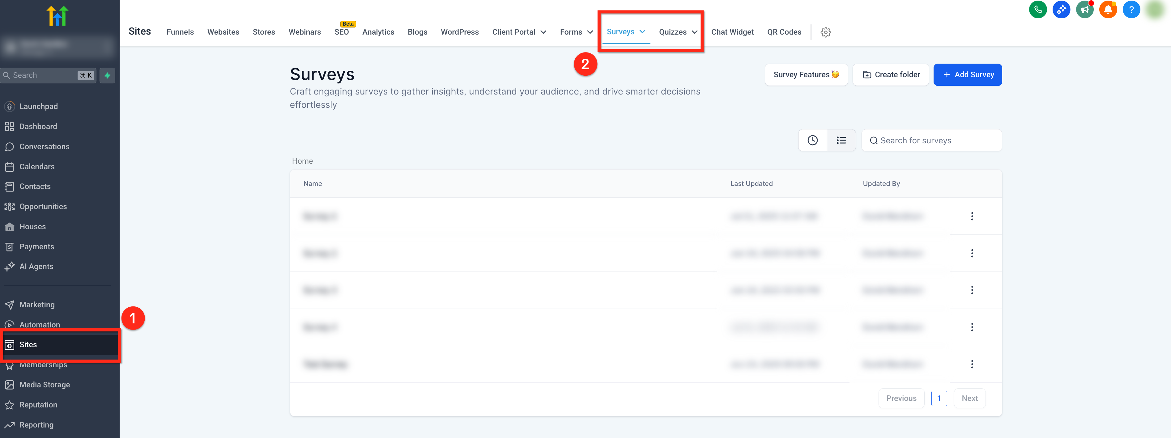 To create a new quiz/survey, click the blue + Add Survey or + Add Quiz button in the upper right corner