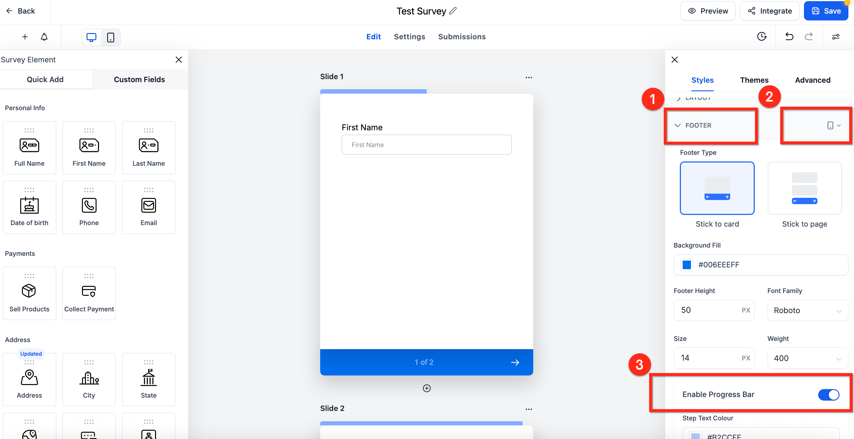 Follow these steps to quickly activate the mobile progress bar and start improving form completions. The steps are the same for both quizzes and surveys.