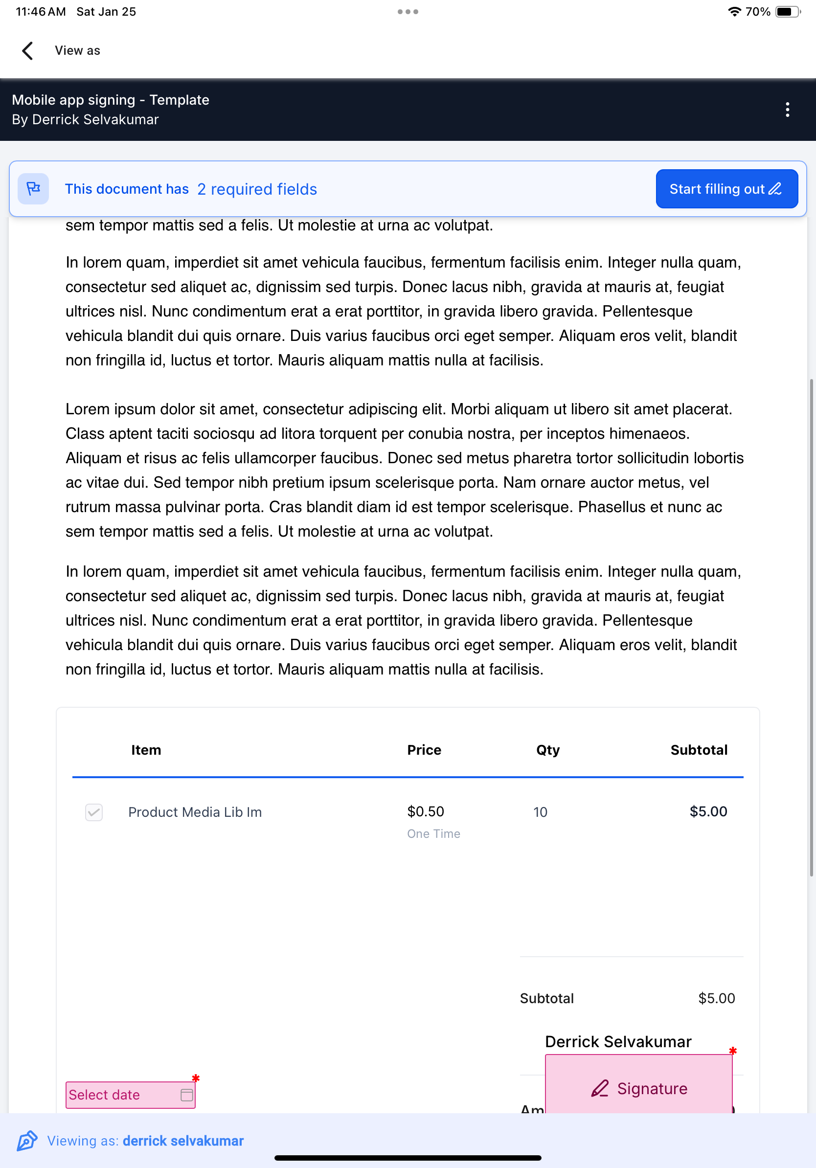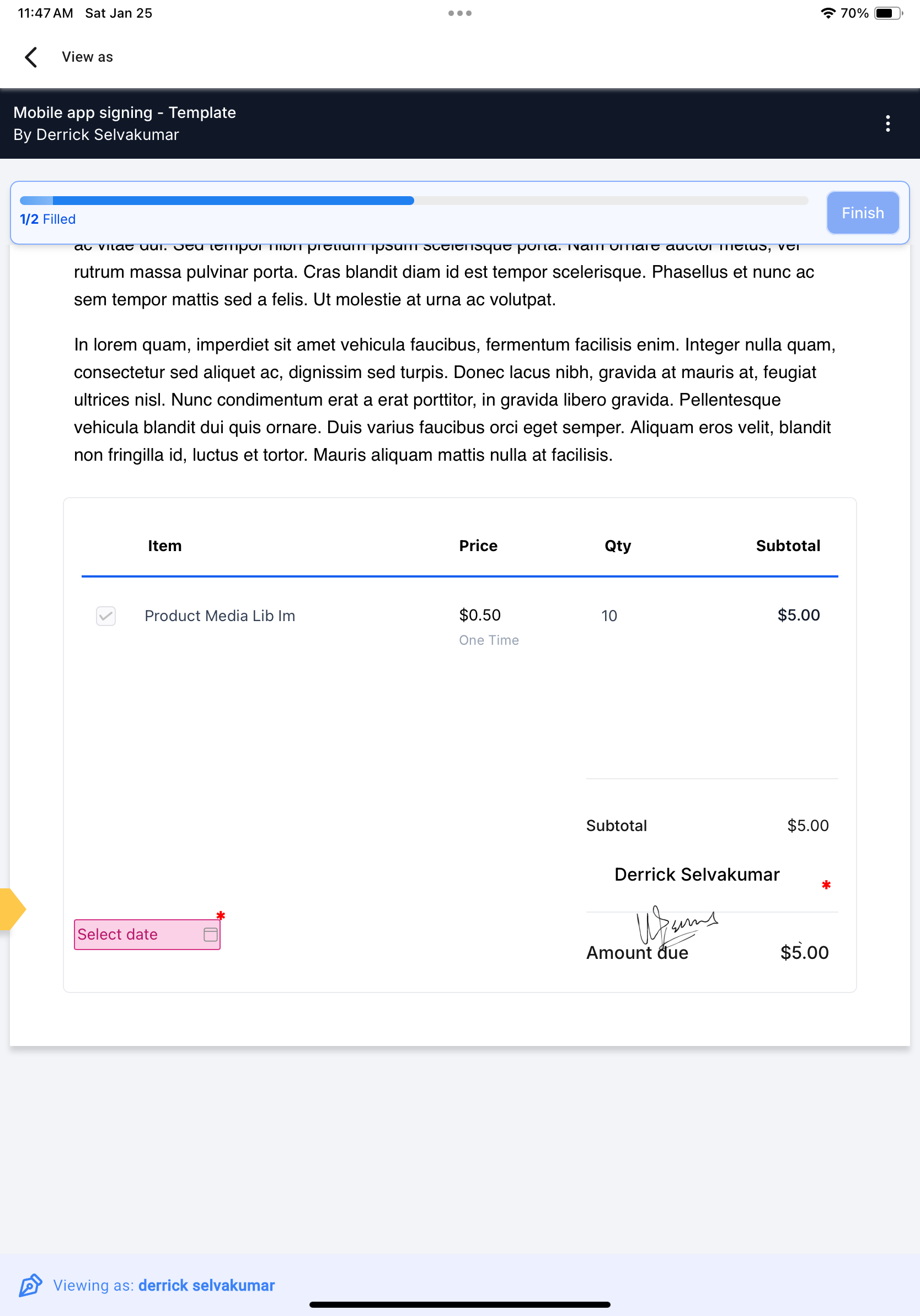 Follow these steps to prepare and sign a document directly from your mobile app:
