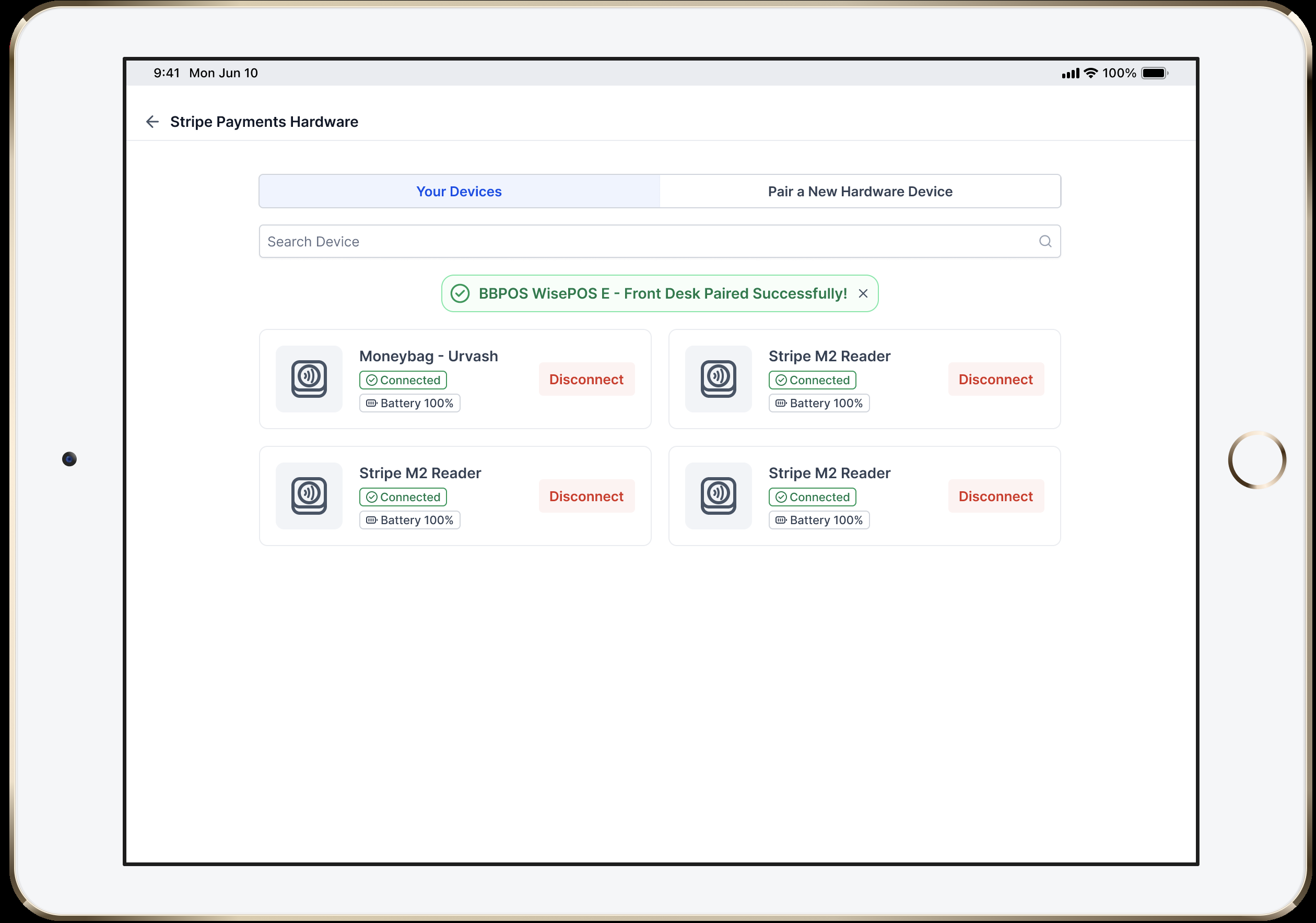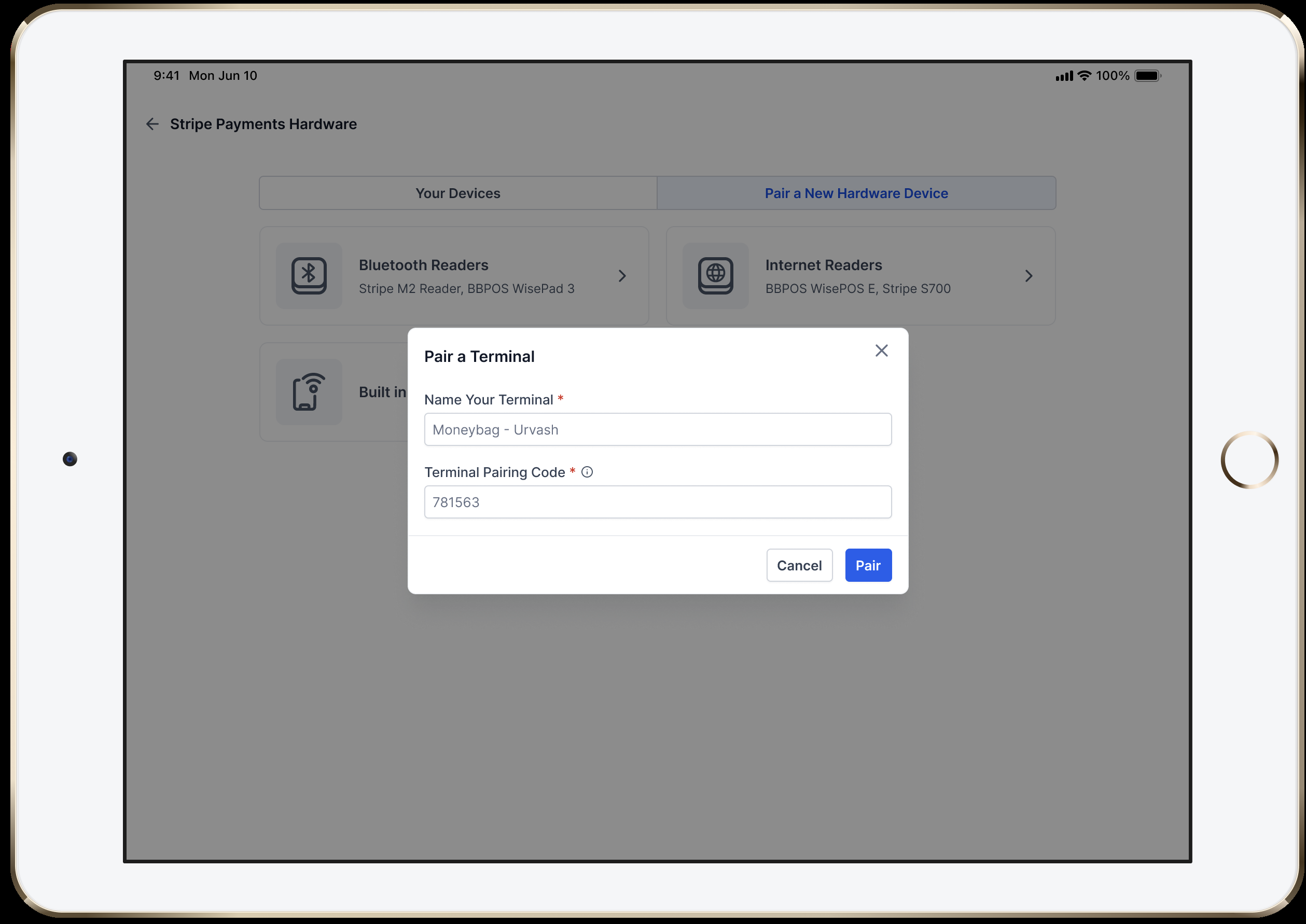 - Navigate to Settings → Stripe Payment Hardware → Pair New Devices → Internet Readers