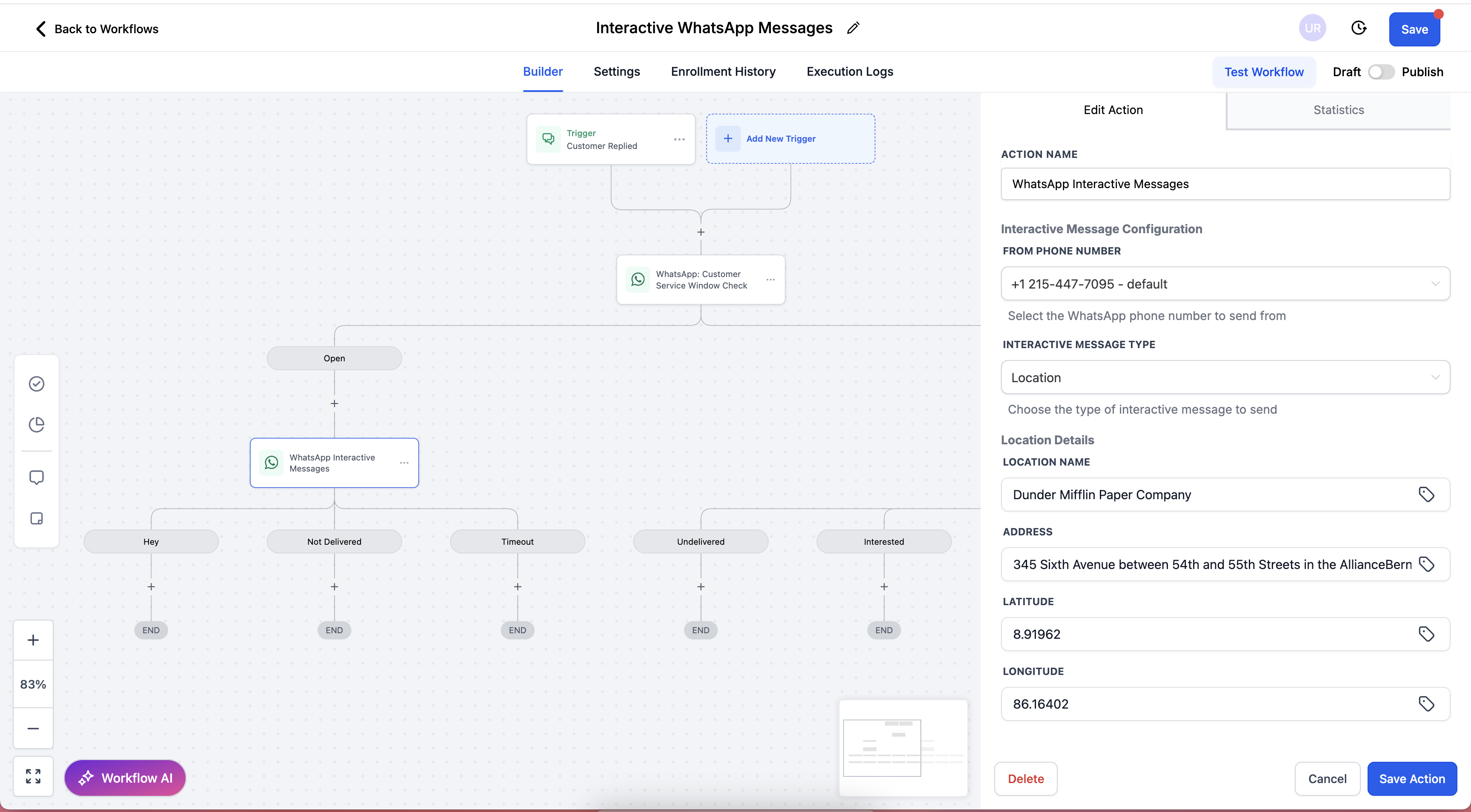 (Optional) Rename Action Name for clarity (default is WhatsApp Interactive Messages).