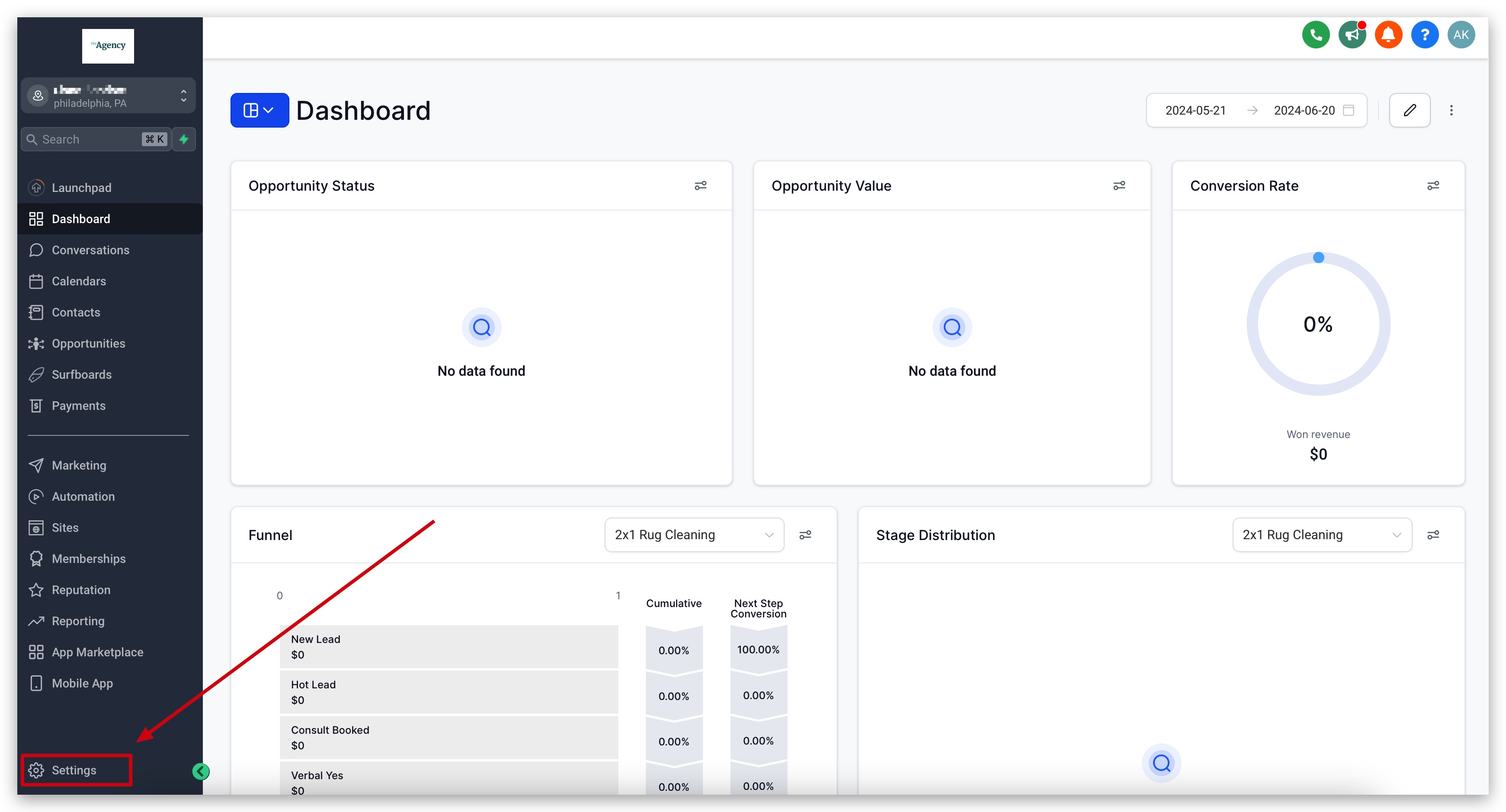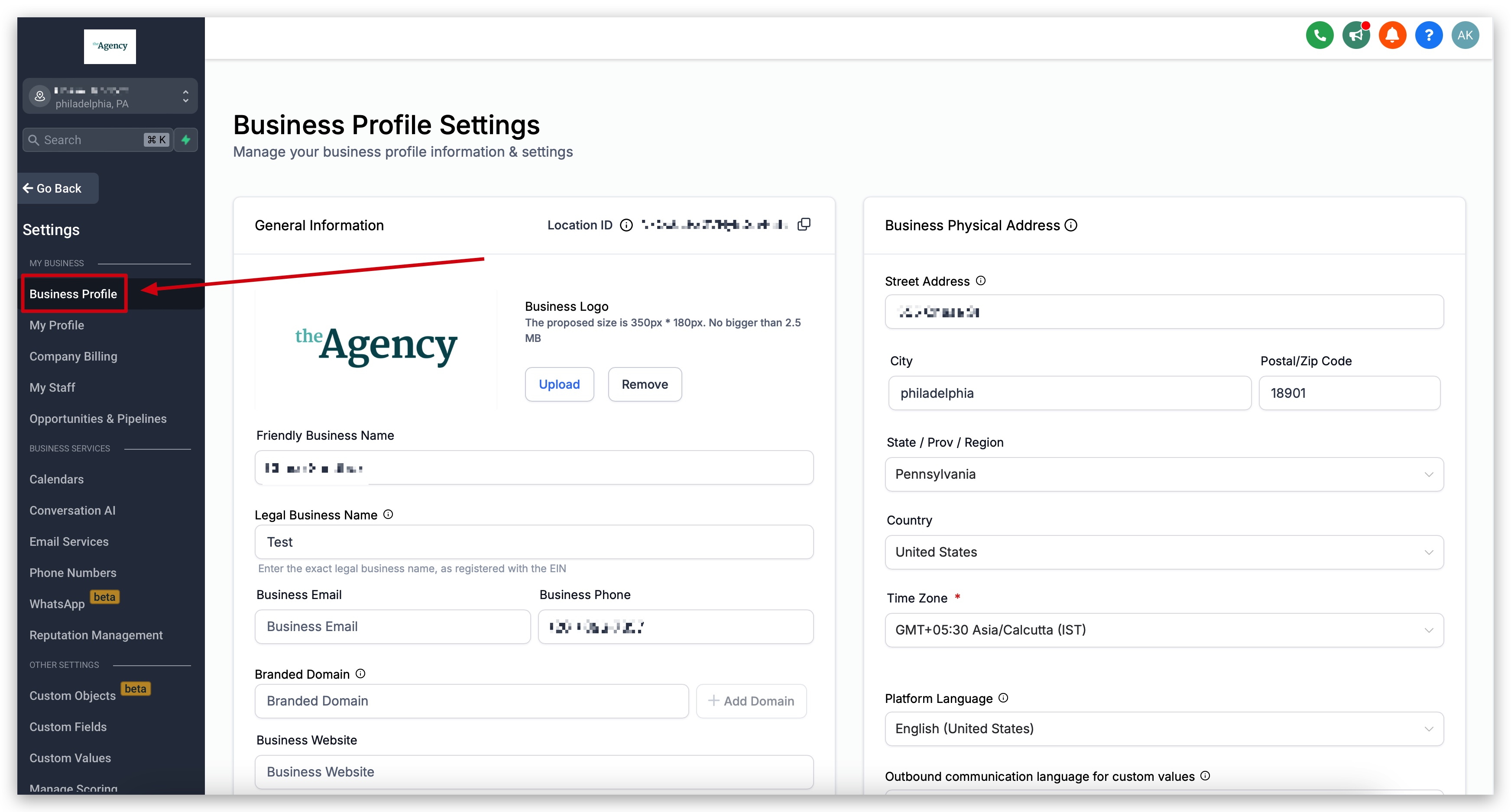Login to HighLevel -> Select a Sub-Account -> Click Settings -> Business ProfileWhat is in the Business Profile Settings?