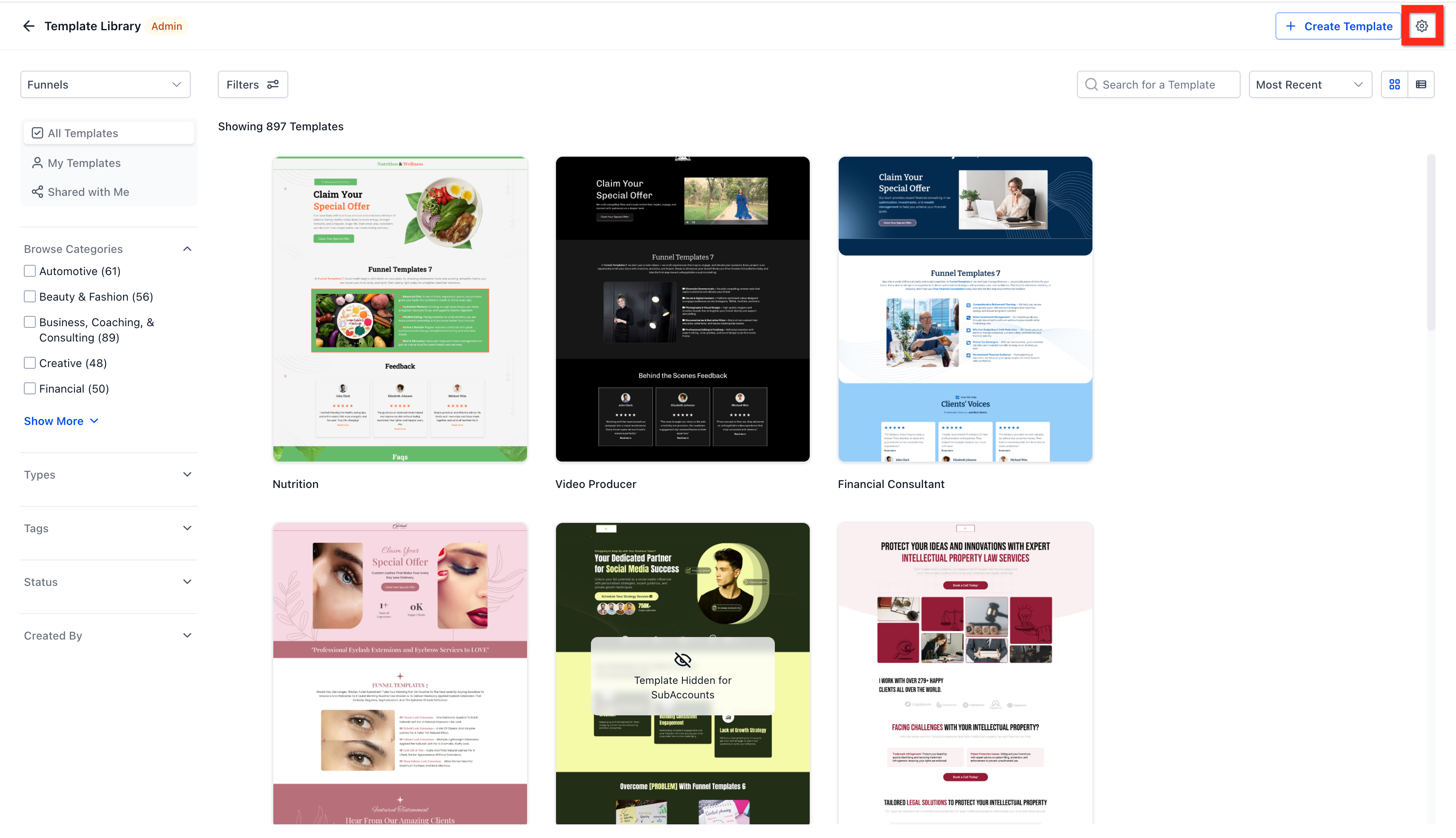 - Browse Templates - Admins on the $97 and $297 plans can now browse the Template Library.