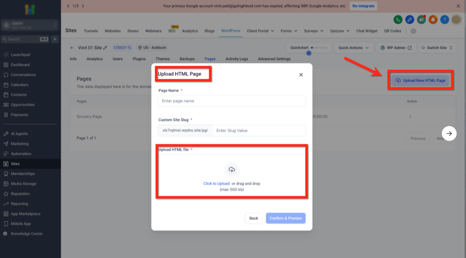 Uploading a Custom HTML Page in HighLevel takes only a few clicks and requires no external hosting configuration. Follow the steps below to get your page live in minutes.