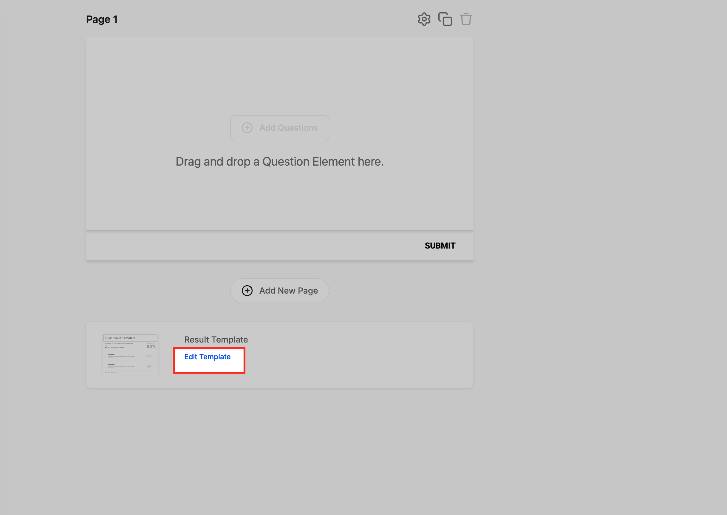 In the builder, you can edit your quiz content, add questions, and review your Result Template.