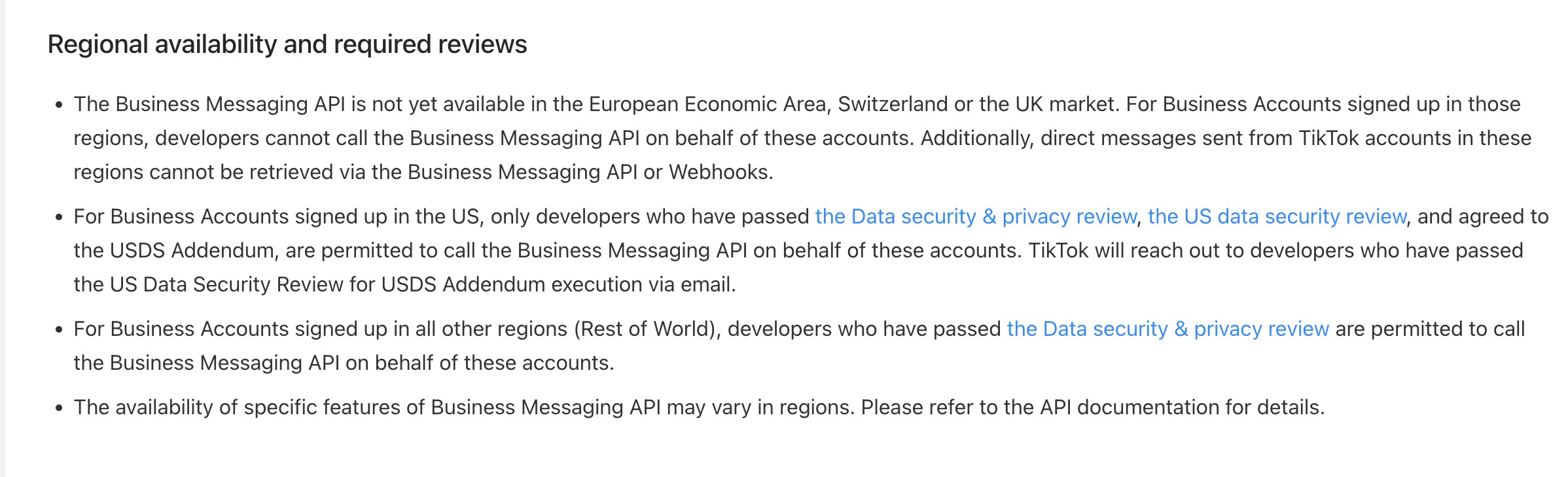 The TikTok Messaging & Comment Automation feature is not yet available in the European Economic Area (EEA), Switzerland, or the United Kingdom (UK).