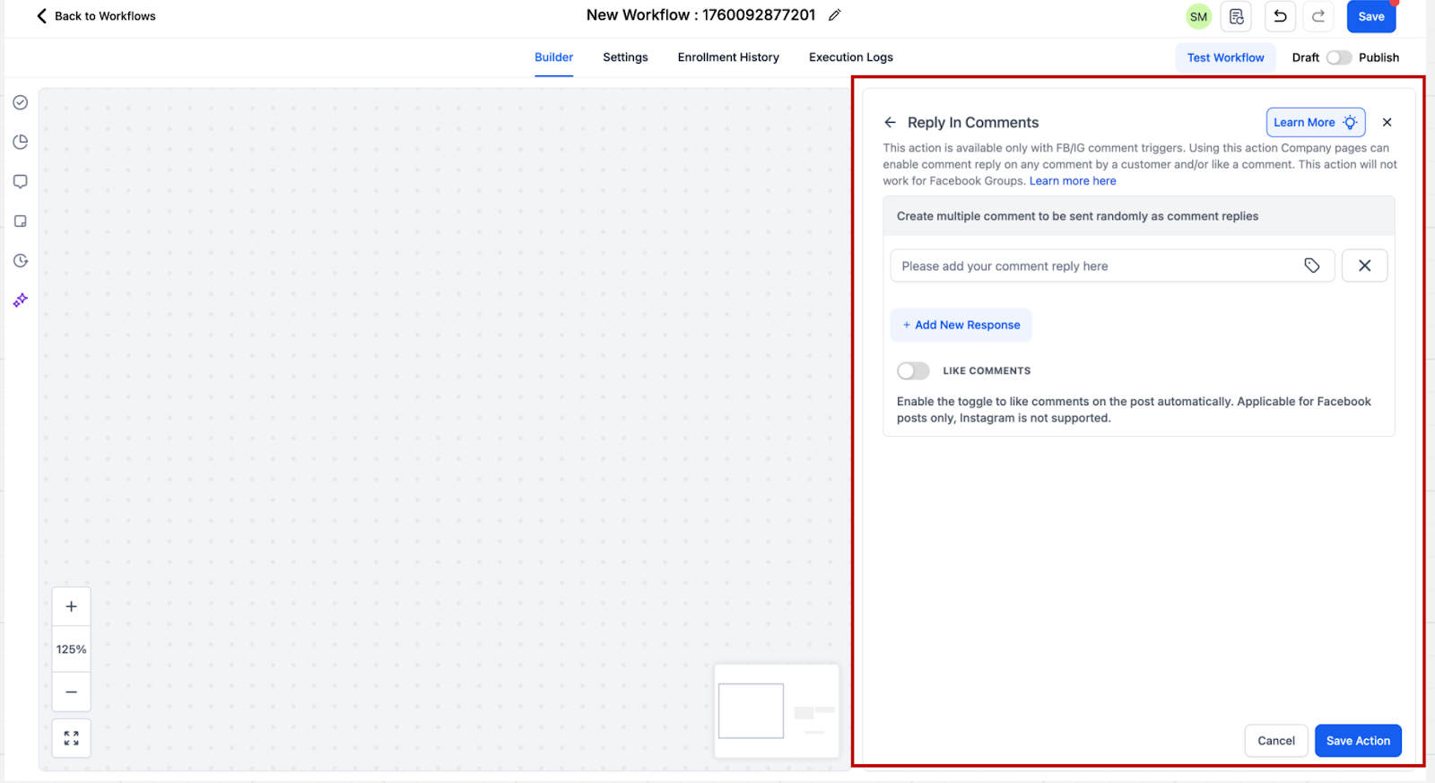 Users can configure up to 10 reply comments, which will be randomly selected during execution.