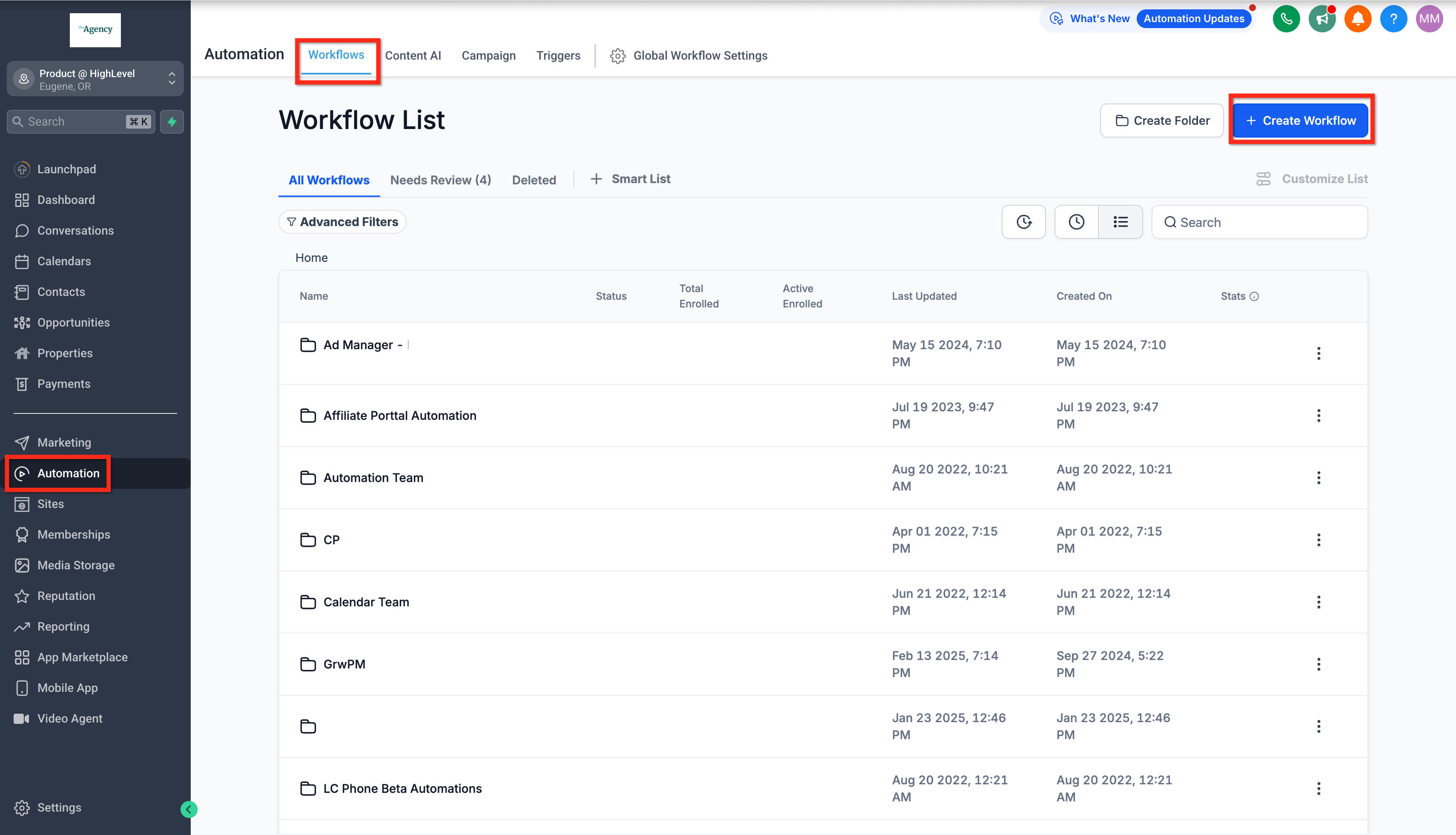 Navigate to Automation > Workflows, and click + Create Workflow.