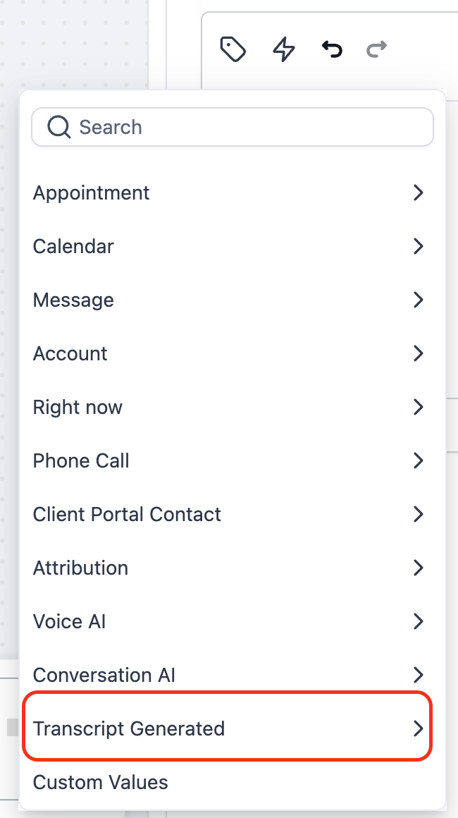 The Transcript Generated workflow trigger enables intelligent post-call automation by activating workflows the moment a call transcript becomes available. It works across Voice AI, IVR, and LC Phone calls, allowing you to automate follow-ups, update CRM data, create tasks, and leverage insights from real conversation content — all without manual intervention.