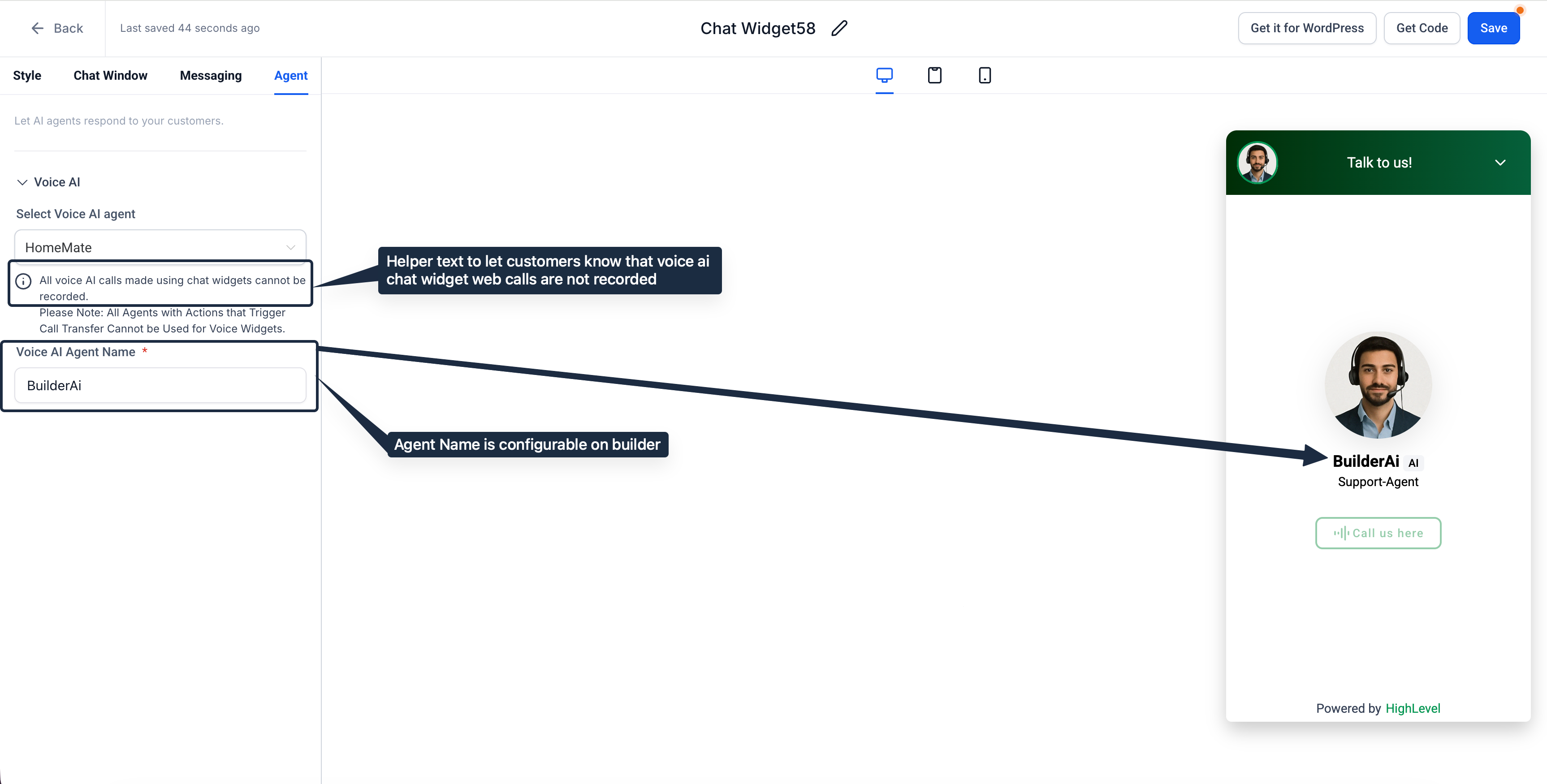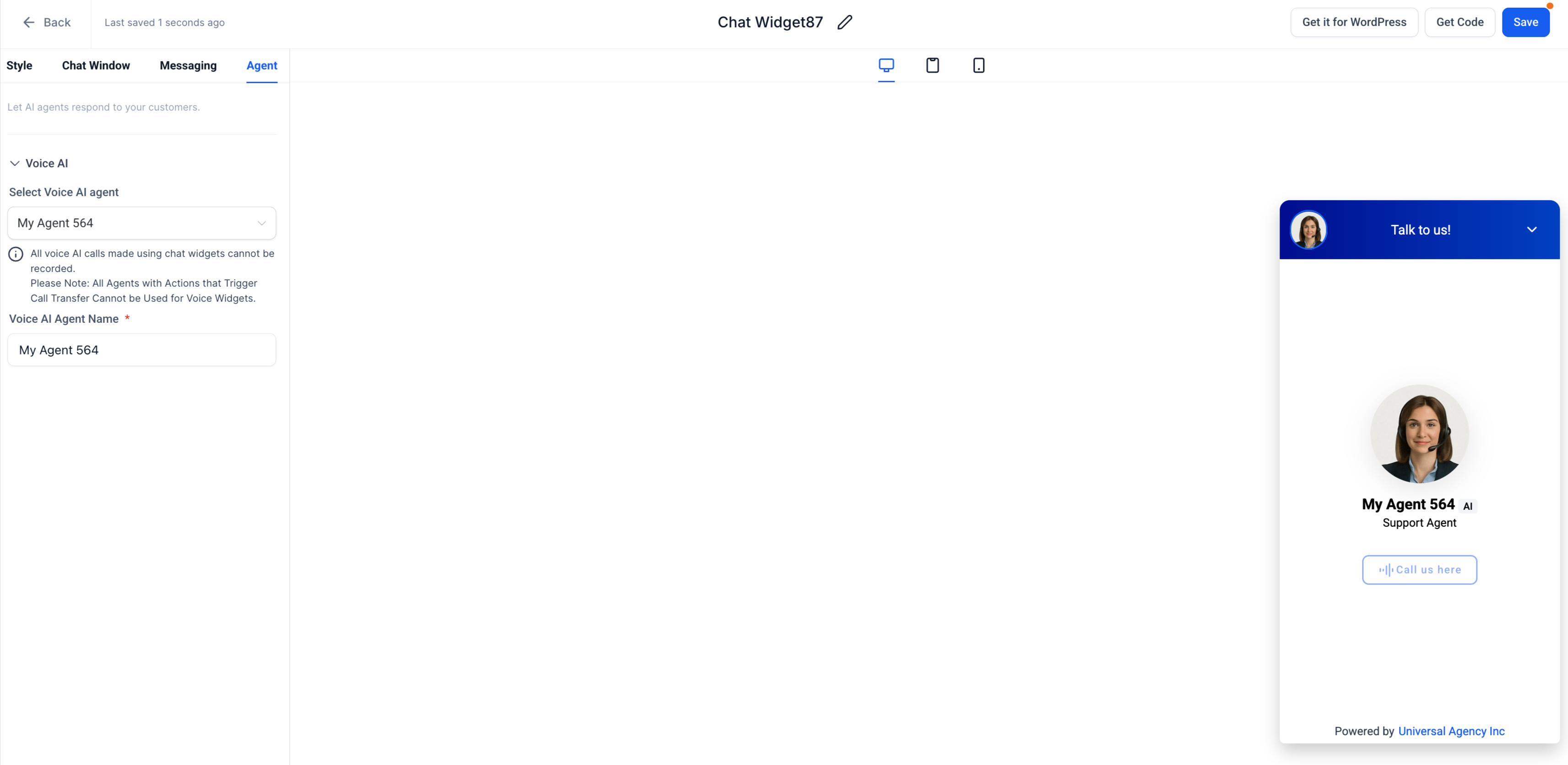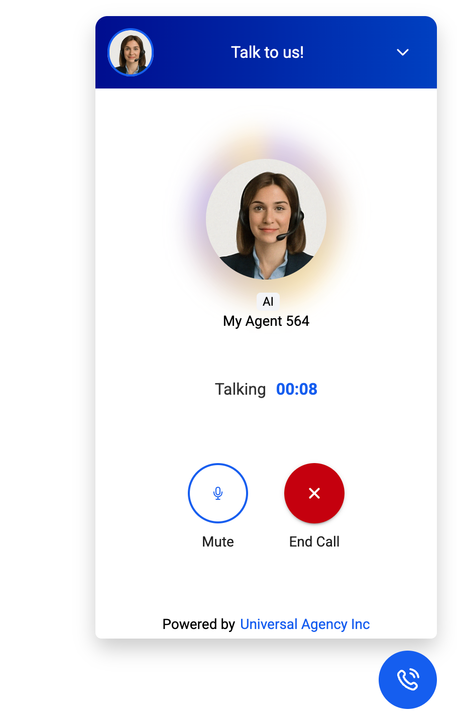 - The Voice AI Chat Widget allows visitors to communicate with your AI agent using real-time voice conversations directly inside the chat widget.