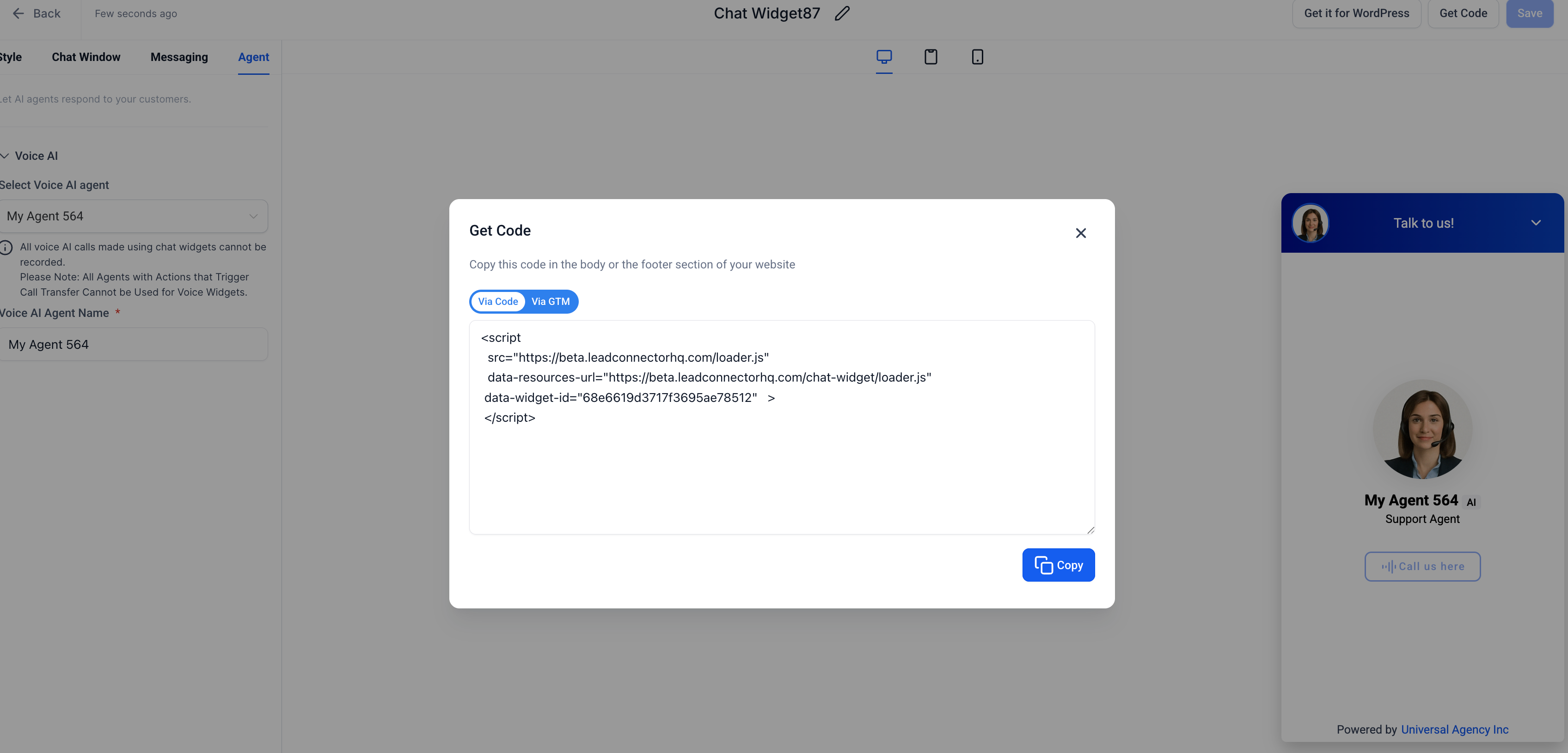 Note: You will not be allowed to create a voice AI chat widget unless your Voice AI setup along with agent creation is completed.