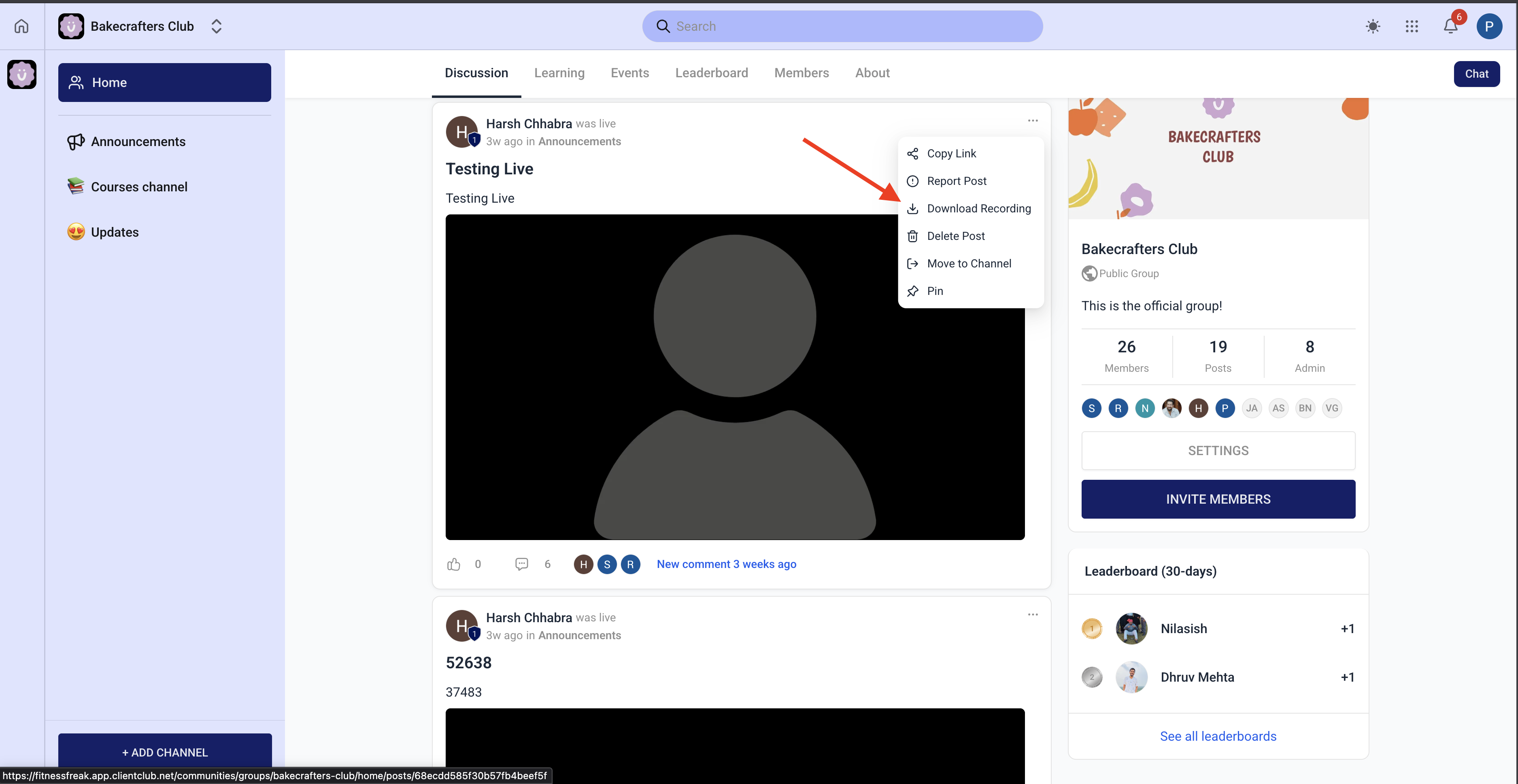 - Post authors and group admins can now download recordings directly making it easier to save and share sessions.