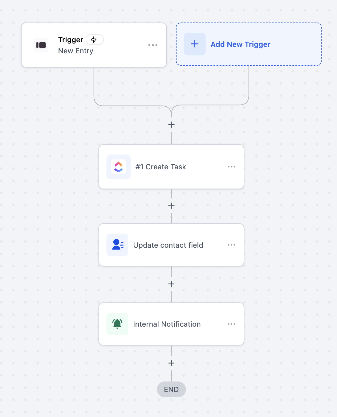 Goal: Automatically create a ClickUp task, update the contact field, and send an internal notification when someone submits a Typeform entry.