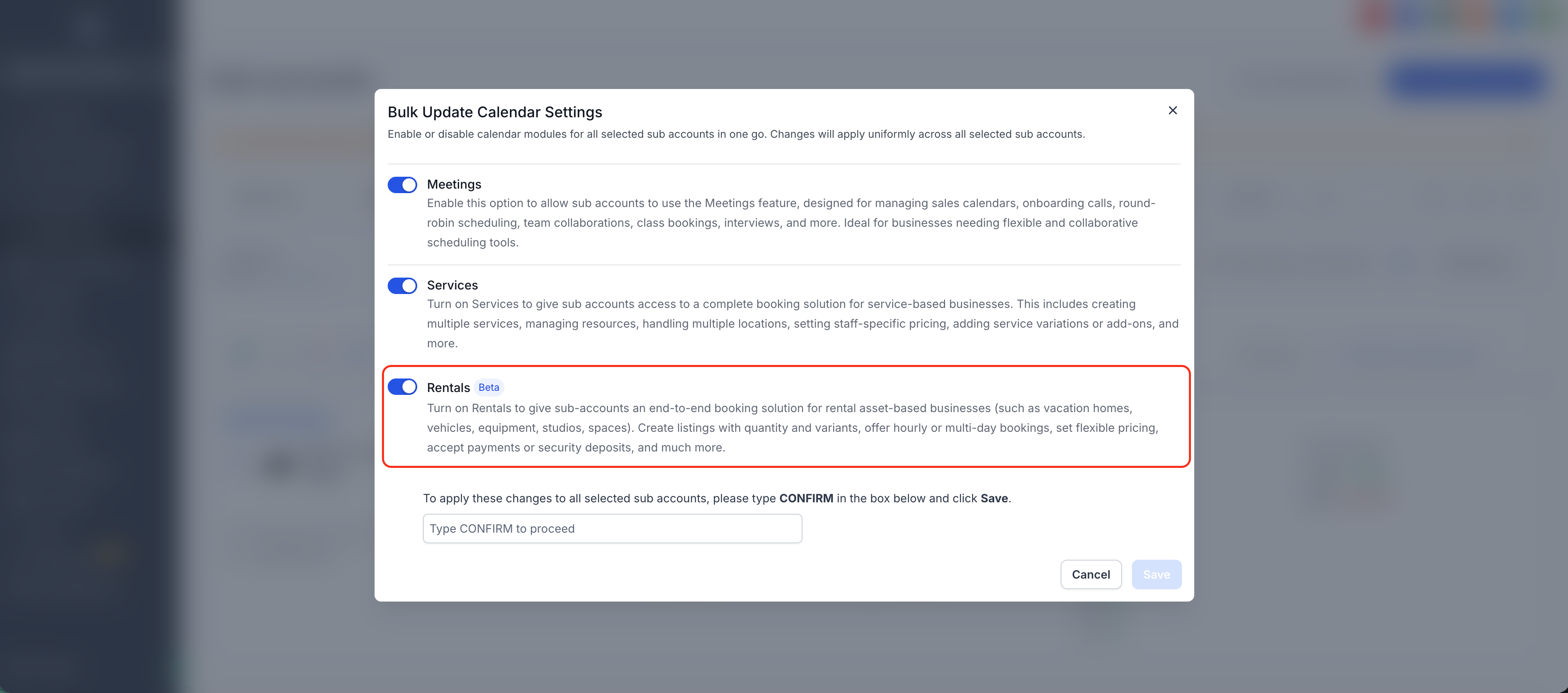 You can enable Rentals for sub-accounts directly from Agency Settings. Follow these steps to activate Rentals for multiple sub-accounts at once!